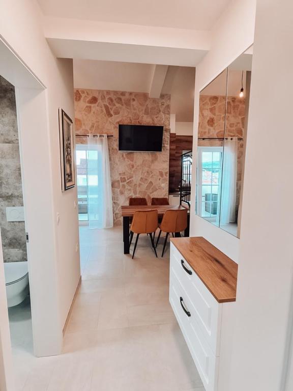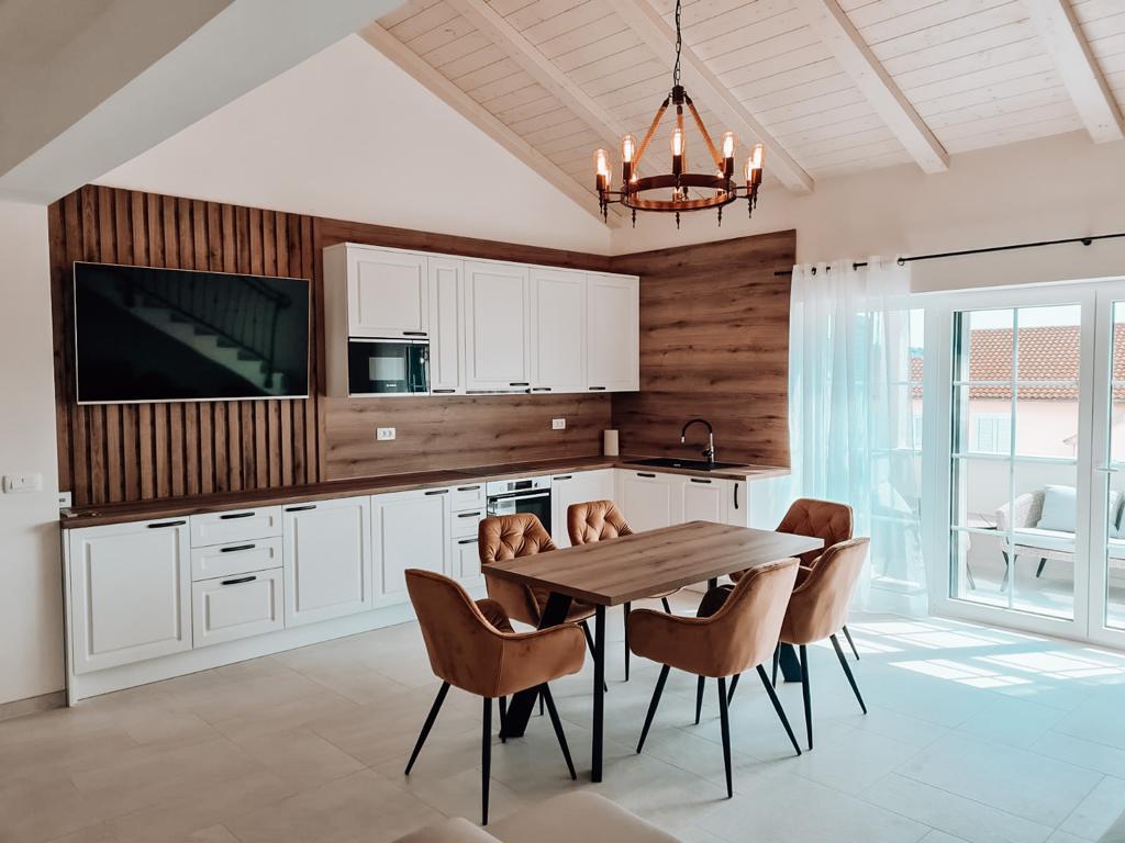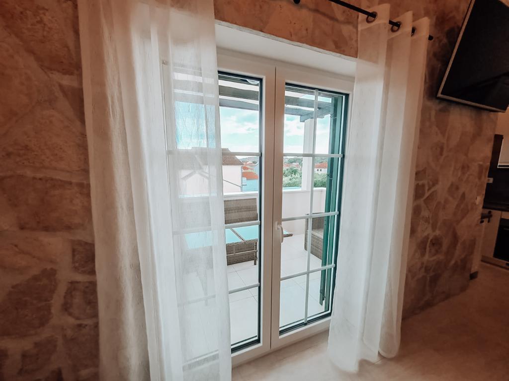 Stone House Jezera - Twoja oaza spokoju i komfortu na wybrzeżu Morza Adriatyckiego. Dołącz do nas w naszym wspaniałym kompleksie apartamentów Stone House Jezera, który znajduje się w Jezera, na wyspie Murter w Chorwacji. Obiekt Stone House Jezera wyposażony jest w duchu lokalnej nadmorskiej tradycji w nowoczesną architekturę, dostosowaną do potrzeb i wymagań współczesnego stylu życia. Miasto Jezera zostało uznane za ukryty klejnot Adriatyku ze względu na jego nienaruszoną przyrodę, bogate dziedzictwo kulturowe i autentycznie przyjazną atmosferę. Tutaj odkryjesz malownicze uliczki otoczone charakterystyczną nadmorską architekturą i piękną przyrodą, która Cię oczaruje. Ciesz się ciszą i spokojem i poddaj się magii tego miejsca. W miejscowości Jezera do dyspozycji są dwie zorganizowane plaże miejskie, a dla spragnionych spokoju, ciszy i dziewiczej przyrody na wyspie jest wiele ukrytych zatoczek, do których można dotrzeć pieszo lub rowerem. Na wyspie Murter znajduje się wiele szlaków pieszych i rowerowych, z których roztacza się wspaniały widok na Kornaty. W Stone House Jezera oddajesz do dyspozycji dwa komfortowe i nowocześnie wyposażone apartamenty. Apartament 2 ma powierzchnię 70 metrów kwadratowych i obejmuje 2 sypialnie, 2 łazienki oraz salon z w pełni wyposażoną kuchnią, w której możesz cieszyć się kulinarnymi przyjemnościami. Przygotowaliśmy dla Państwa wygodny zestaw jadalniany na balkonie apartamentu, gdzie można miło spędzić czas przy jedzeniu i napojach. Apartament 3 o powierzchni 76 m2 składa się z dwóch przestronnych sypialni, dwóch łazienek oraz wygodnego salonu z w pełni wyposażoną kuchnią. Apartament ten posiada również urządzony balkon, na którym można posiedzieć i spędzić czas towarzysko z widokiem na jezioro. Obydwa apartamenty są w pełni klimatyzowane, a zimą zapewniamy Państwu również centralne ogrzewanie, dzięki czemu o każdej porze roku poczują się Państwo j