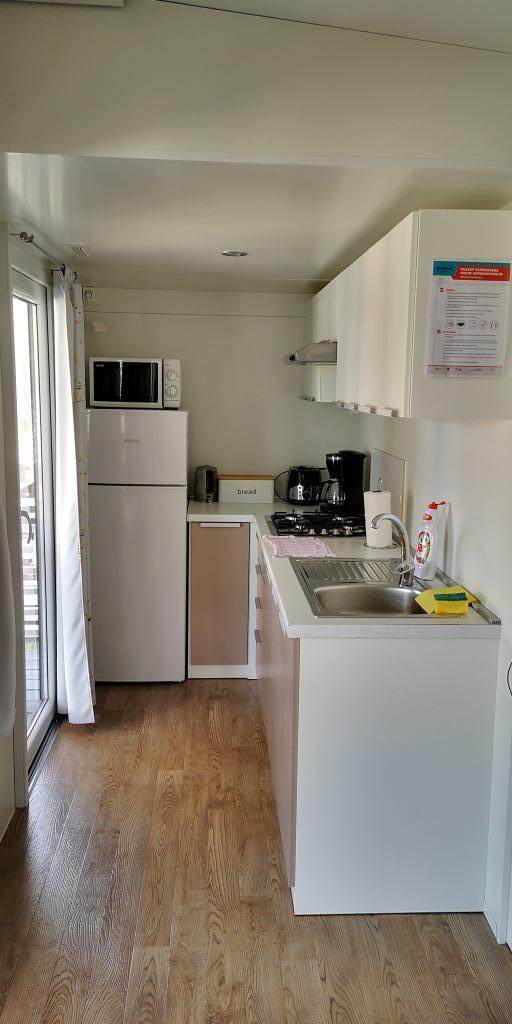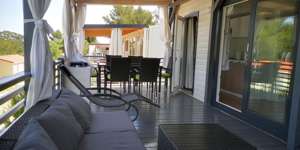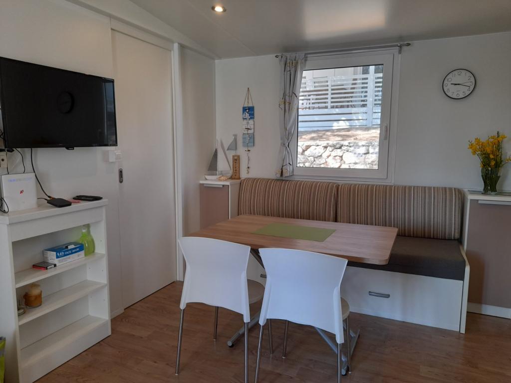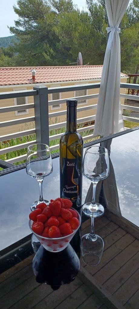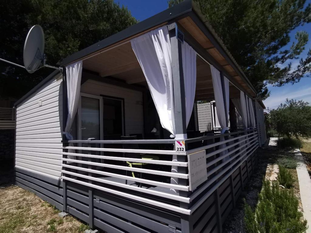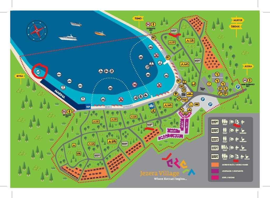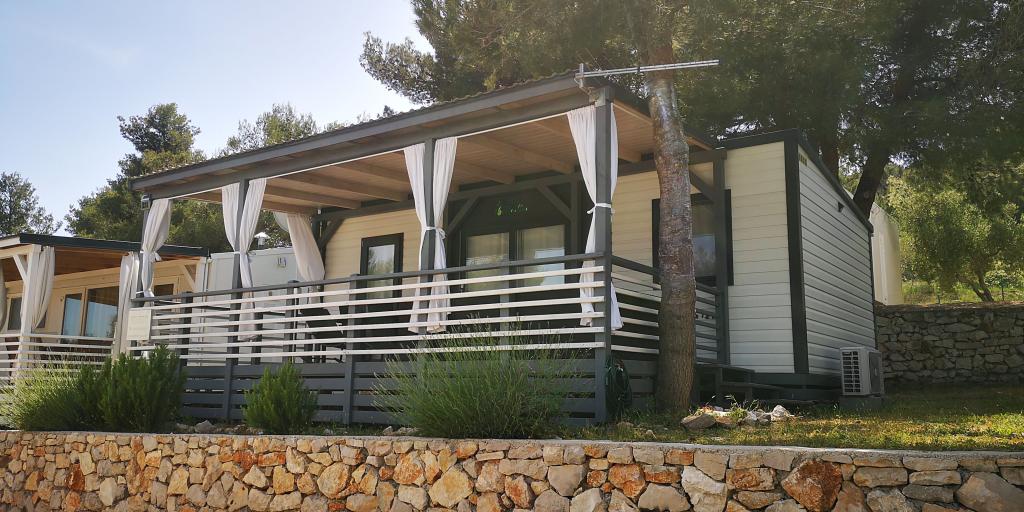 Nasz domek mobilny położony jest w kurorcie turystycznym Jezera Village. Położony jest w spokojnej części miejscowości, otoczony lasem sosnowym. Budynek składa się z 2 pokoi dwuosobowych (1 x osobne łóżka + 1 x łóżko małżeńskie), pokoju dziennego, kuchni i łazienki oraz przestronnego tarasu (25 m2). Dom jest w pełni wyposażony, z 2 telewizorami (taras i pokój dzienny). Usiądź na tarasie i ciesz się medytacyjną rozkoszą zapachów i dźwięków Dalmacji przy lekkim wietrze. Do kamienistej plaży oddalonej o 100 m można dojść w 1 minutę powolnego spaceru w cieniu sosen. Na plaży znajdują się prysznice, częściowa osłona przed słońcem, wypożyczalnia leżaków oraz park wodny dla najmłodszych. Na terenie kempingu znajduje się minimarket, restauracja, bar, pralnia, pizzeria i wszystko, czego potrzeba do beztroskiego wypoczynku.Codziennie (w sezonie) organizowane są animacje, a na terenie kempingu możliwe są wycieczki. Obiekty sportowe obejmują boisko do piłki nożnej, koszykówki i korty tenisowe, tenis stołowy i minigolf. Obóz posiada własną przystań do cumowania łodzi (za opłatą)