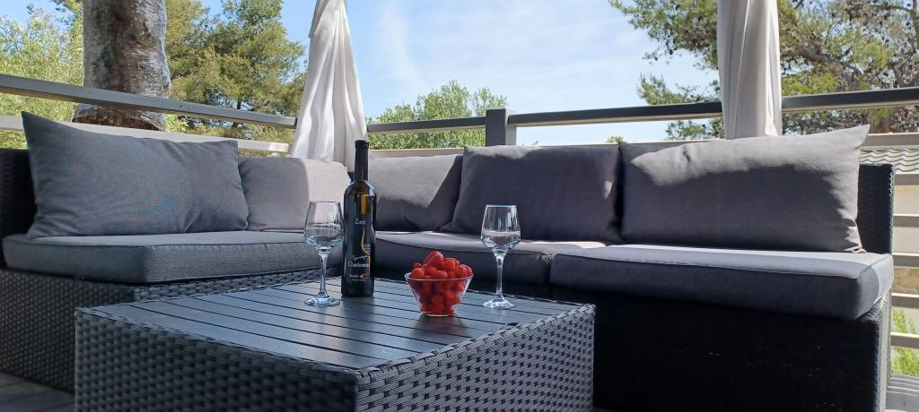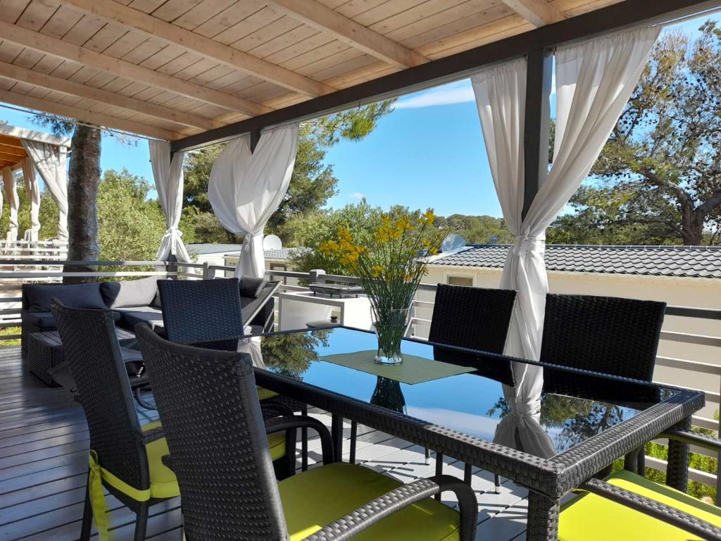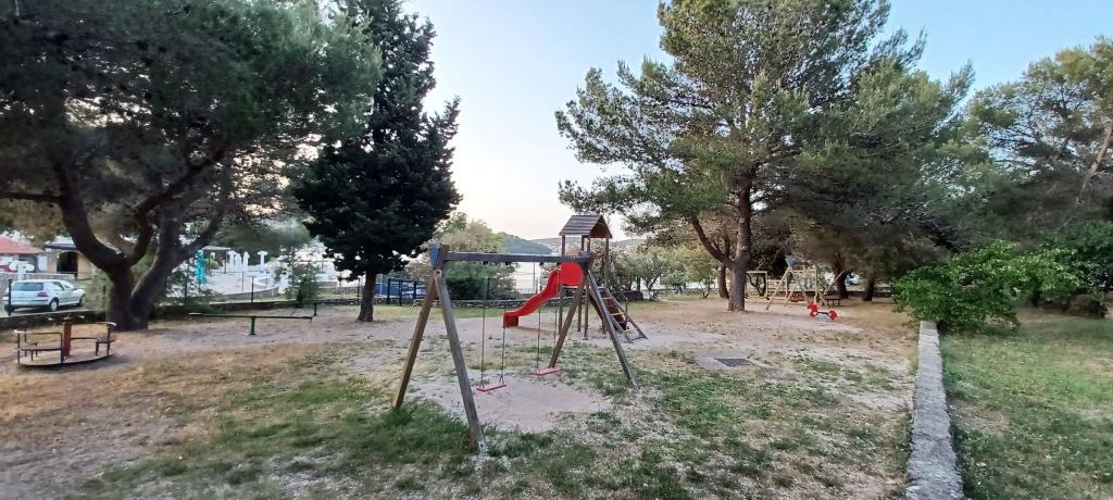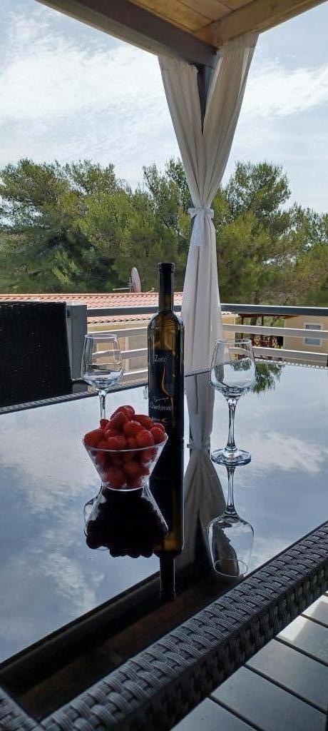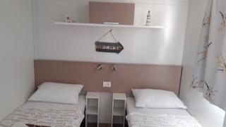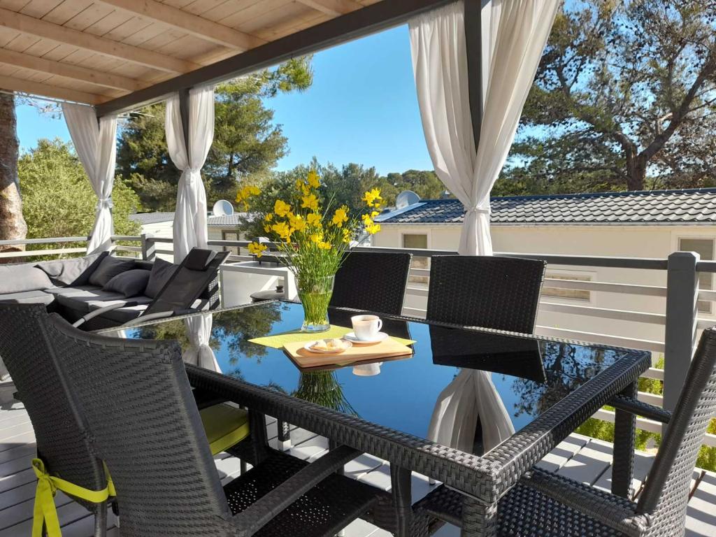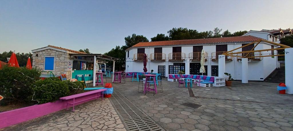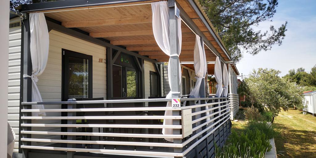 Nasz domek mobilny położony jest w kurorcie turystycznym Jezera Village. Położony jest w spokojnej części miejscowości, otoczony lasem sosnowym. Budynek składa się z 2 pokoi dwuosobowych (1 x osobne łóżka + 1 x łóżko małżeńskie), pokoju dziennego, kuchni i łazienki oraz przestronnego tarasu (25 m2). Dom jest w pełni wyposażony, z 2 telewizorami (taras i pokój dzienny). Usiądź na tarasie i ciesz się medytacyjną rozkoszą zapachów i dźwięków Dalmacji przy lekkim wietrze. Do kamienistej plaży oddalonej o 100 m można dojść w 1 minutę powolnego spaceru w cieniu sosen. Na plaży znajdują się prysznice, częściowa osłona przed słońcem, wypożyczalnia leżaków oraz park wodny dla najmłodszych. Na terenie kempingu znajduje się minimarket, restauracja, bar, pralnia, pizzeria i wszystko, czego potrzeba do beztroskiego wypoczynku.Codziennie (w sezonie) organizowane są animacje, a na terenie kempingu możliwe są wycieczki. Obiekty sportowe obejmują boisko do piłki nożnej, koszykówki i korty tenisowe, tenis stołowy i minigolf. Obóz posiada własną przystań do cumowania łodzi (za opłatą)