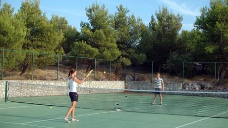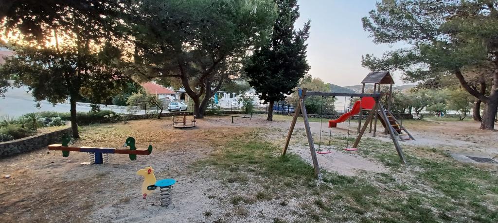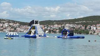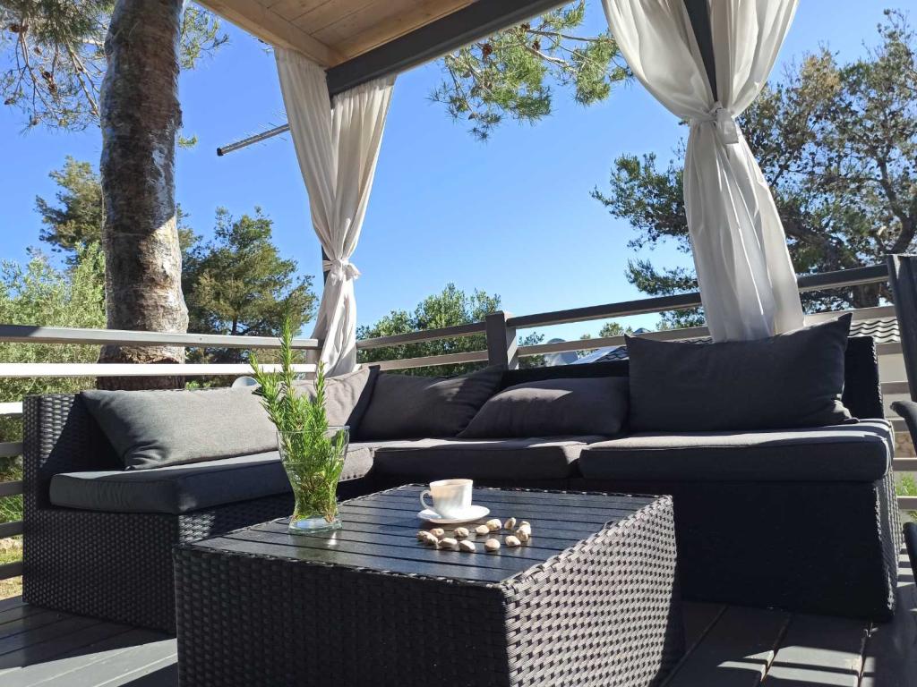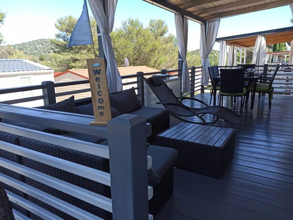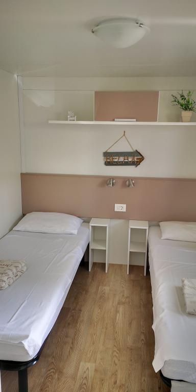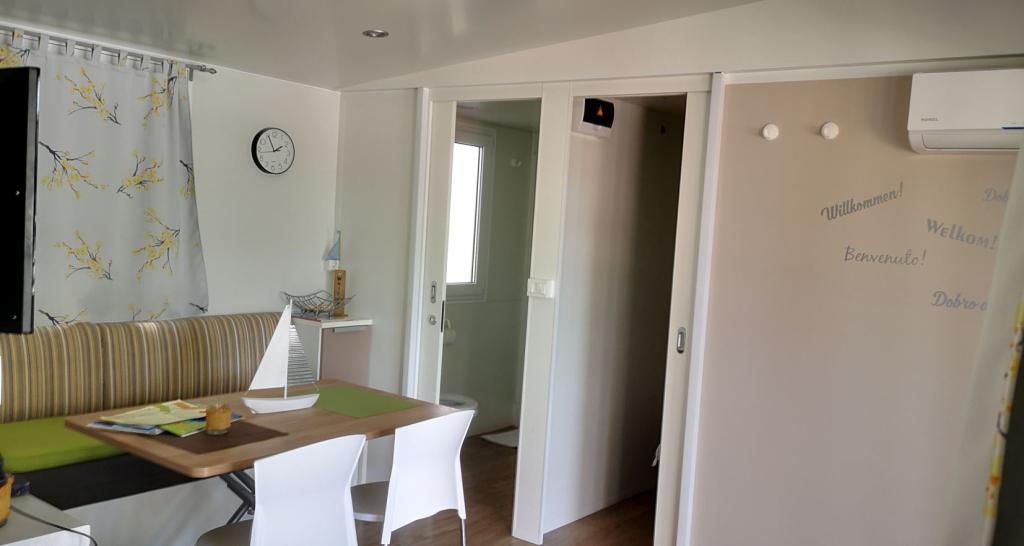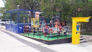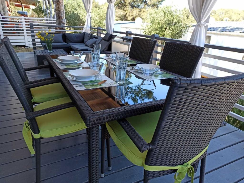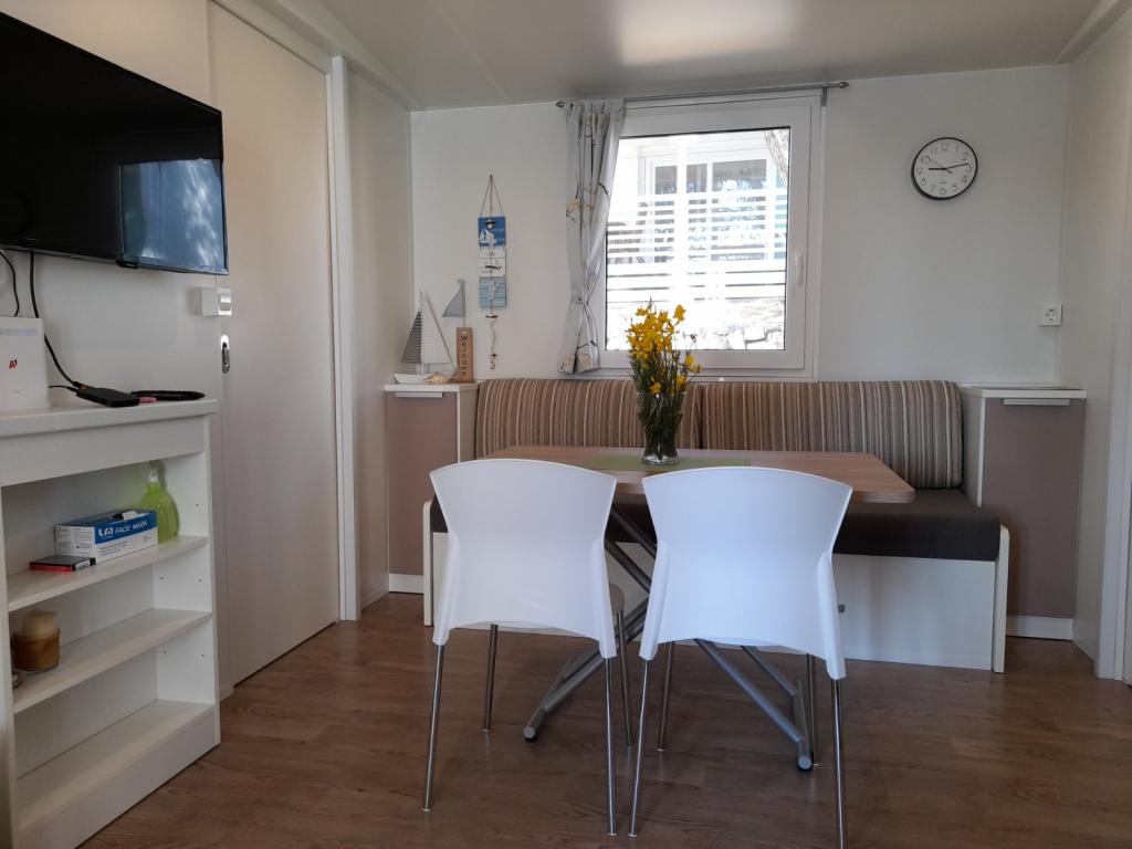Nasz domek mobilny położony jest w kurorcie turystycznym Jezera Village. Położony jest w spokojnej części miejscowości, otoczony lasem sosnowym. Budynek składa się z 2 pokoi dwuosobowych (1 x osobne łóżka + 1 x łóżko małżeńskie), pokoju dziennego, kuchni i łazienki oraz przestronnego tarasu (25 m2). Dom jest w pełni wyposażony, z 2 telewizorami (taras i pokój dzienny). Usiądź na tarasie i ciesz się medytacyjną rozkoszą zapachów i dźwięków Dalmacji przy lekkim wietrze. Do kamienistej plaży oddalonej o 100 m można dojść w 1 minutę powolnego spaceru w cieniu sosen. Na plaży znajdują się prysznice, częściowa osłona przed słońcem, wypożyczalnia leżaków oraz park wodny dla najmłodszych. Na terenie kempingu znajduje się minimarket, restauracja, bar, pralnia, pizzeria i wszystko, czego potrzeba do beztroskiego wypoczynku.Codziennie (w sezonie) organizowane są animacje, a na terenie kempingu możliwe są wycieczki. Obiekty sportowe obejmują boisko do piłki nożnej, koszykówki i korty tenisowe, tenis stołowy i minigolf. Obóz posiada własną przystań do cumowania łodzi (za opłatą)