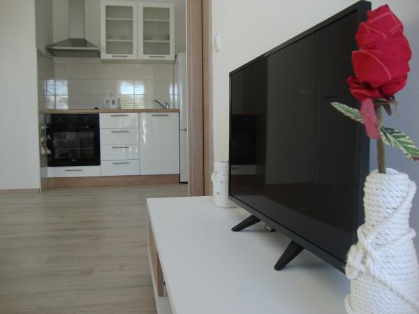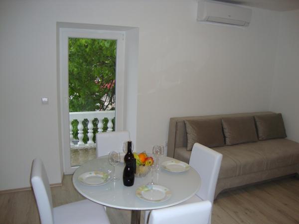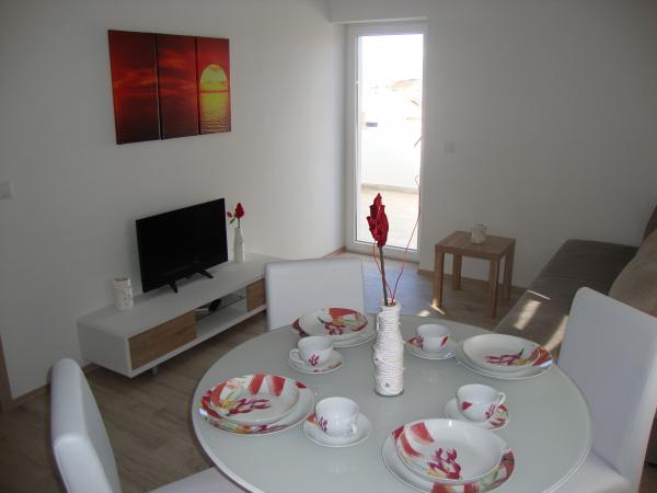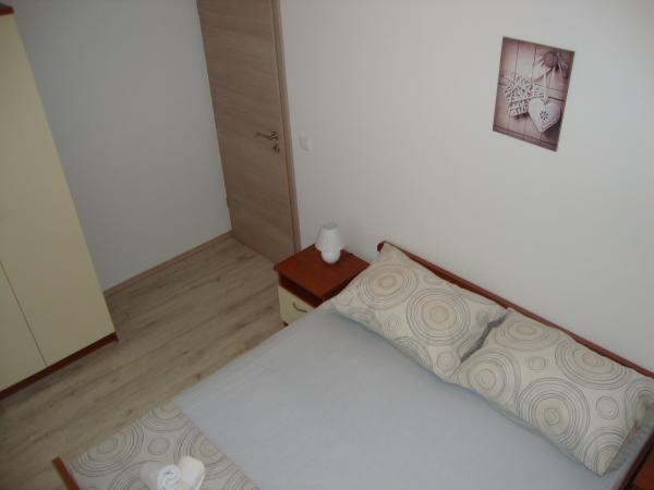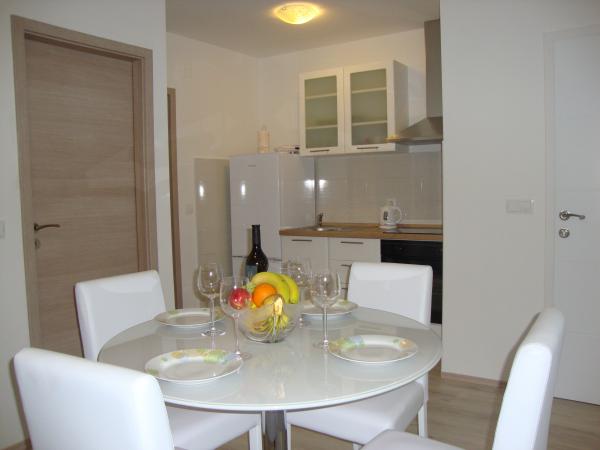 Longin apartamenty znajdują się na pierwszym piętrze i są idealne dla dwóch rodzin. Są one połączone za pomocą małej sali, która mieści się frontowe drzwi domu. Właściciele mieszkają na parterze, a ziemia wokół domu stoczni, gajów oliwnych i ognisko na zewnątrz, który jest dostępny dla gości. Mieszkanie ma 31 m2 piętro i taras 20 m2 i mieszkanie LEONA ma 31 m2 i balkon 4 m2. Obok domu znajduje się mini-market. Do plaży jest 300m i 800m, a obie mają bezpłatny parking, prysznice oraz zaplecze z jedzeniem i piciem. Wyspa Ugljan jest połączona z lądem linii ekspresowych co godzinę, więc nie Zadar nie jest daleko. LONGIN apartamenty zlokalizowane są w miejscowości Kali. Dwa mniejsze publiczne bezpłatne miejsca parkingowe znajdują się 50m od mieszkania, podczas gdy z zakładu parkingu.