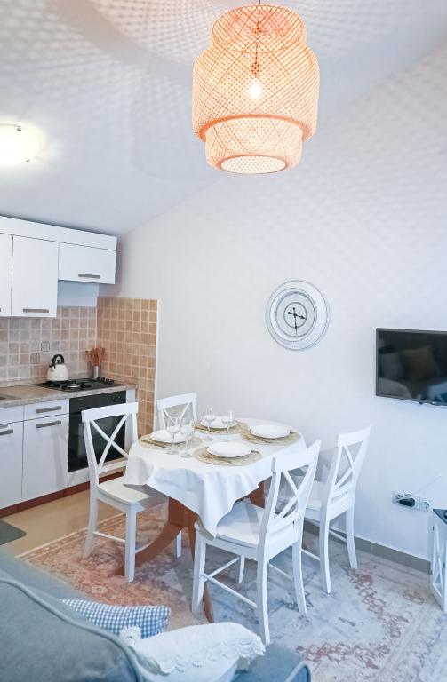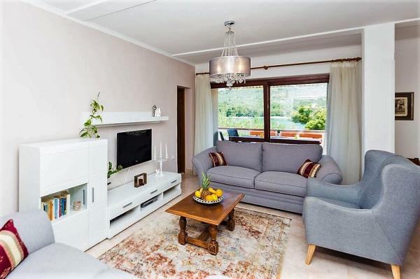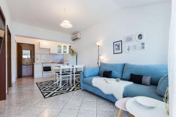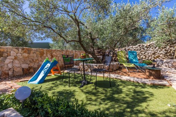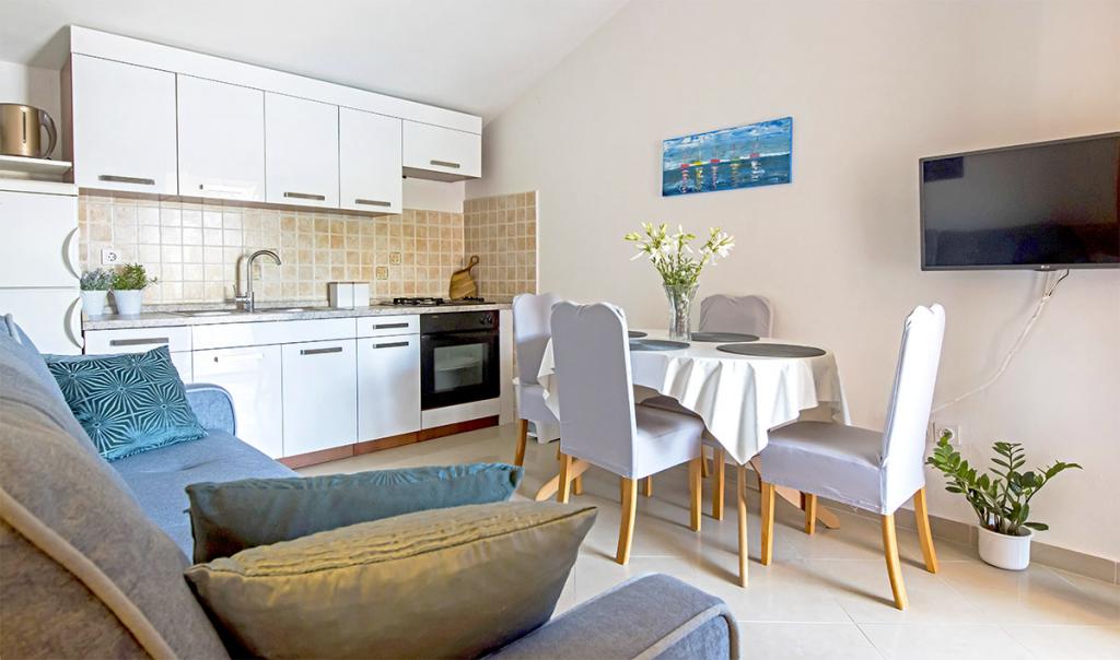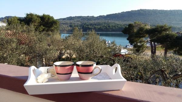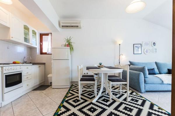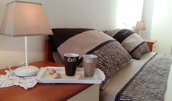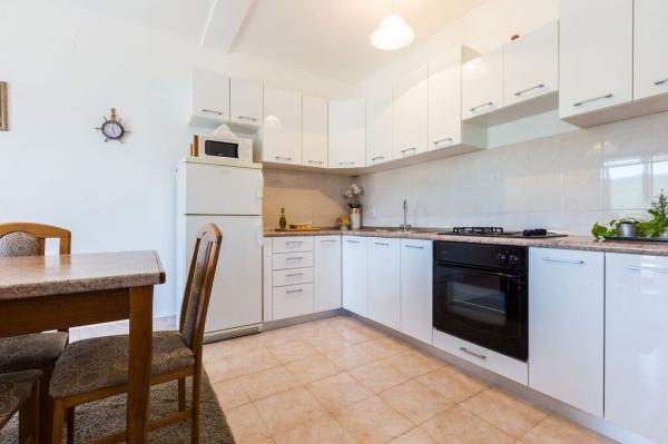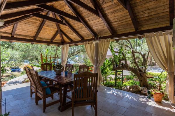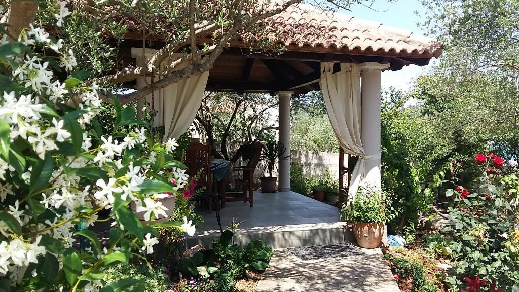 Dom położony jest w zacisznej i spokojnej okolicy z kilku domów. Pobyt w apartamentach polecam tym, którzy chcą wyjechać na czas pokoju. Apartament 4 + 2 posiada duży balkon z pięknym widokiem na ogród i morze. Mieszkanie było ładnie urządzone i czyste i ma wszystko, co potrzebne do gotowania. Właściciele są bardzo przyjaźni. Pan przygotowuje pyszne ryby!