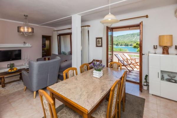 Dom wakacyjny położony jest w pierwszym rzędzie do morza, tylko 30m od plaży. Czy po długiej podróży do czystego i wygodnego apartamentu z widokiem na morze jest lepsze uczucie zrzucania torby? Gdy poczujesz zapach morza i w końcu możesz się zrelaksować, ponieważ… Twoje zasłużone wakacje mogą się rozpocząć. Zadbamy o to, aby Apartament Vitlov stał się w tych dniach Twoim drugim domem. Dom położony jest w cichej zatoce i posiada podwórko z ogrodem, parking, grill, balkon z widokiem na morze. Możemy udostępnić Ci miejsce do cumowania Twojej łodzi. Znajduje się na wyspie Ugljan, Kali, w zatoce Mala Lamjana. Ci, którzy szukają ciszy i spokoju, nietkniętej przyrody, sosnowego lasu, czystego morza, są we właściwym miejscu. W domu znajdują się trzy apartamenty, które wyposażone są w wygodne meble i wszystkie niezbędne sprzęty, pralka znajduje się w osobnym pomieszczeniu do wspólnego użytku. Ich największym atutem są balkony z widokiem na morze, na których można cieszyć się z rodziną. Parking jest zapewniony dla wszystkich pojazdów. W ogrodzie grill do Państwa dyspozycji z tarasem i kompletem do siedzenia.