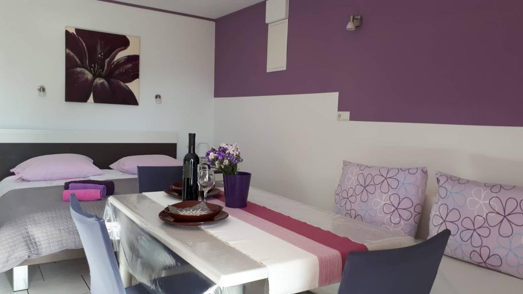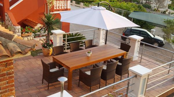 Apartamenty Ana Rab to dom z pięknym widokiem, położony w spokojnej części wyspy Rab, Kampor, zaledwie 70 metrów od pierwszej piaszczystej plaży. Nowocześnie wyposażone apartamenty z własnym wejściem i prywatnym tarasem, a także pięknie wyposażony ogród z głównym tarasem ogrodowym z kominkiem i prysznicem z gorącą wodą. W obiekcie znajduje się prywatny parking. W odległości 150 metrów znajdują się restauracje, sklep spożywczy, dwie kawiarnie, piekarnia, salon fryzjerski, kort tenisowy, centrum nurkowania, boisko do koszykówki i mini-piłki nożnej, biuro turystyczne z biurem wymiany. Witaj!