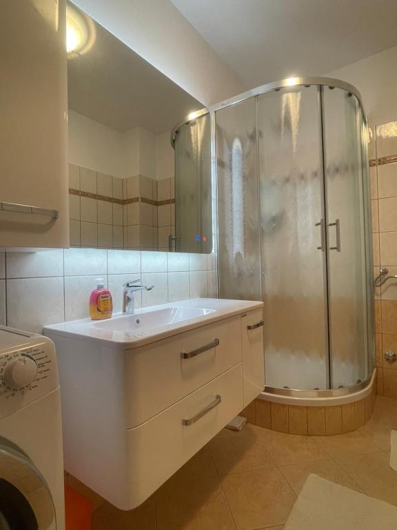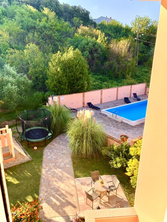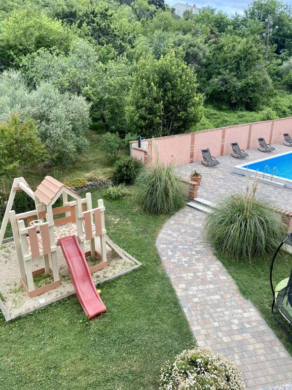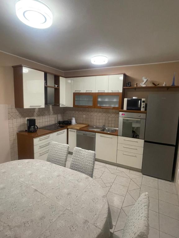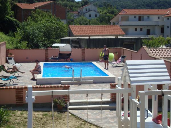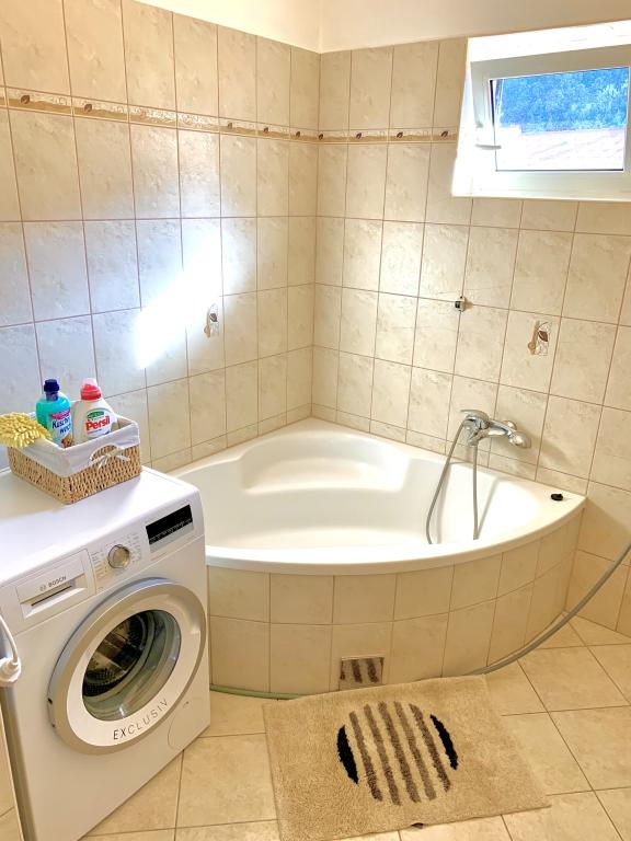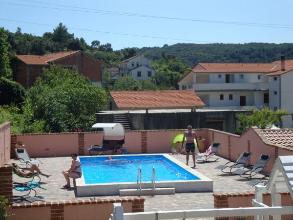Tego lata zatrzymaliśmy się na około 3 tygodnie z kilkoma rodzinami w całym domu. To była nasza pierwsza podróż uliczna na wyspę Rab i jesteśmy zachwyceni! Marija i jej rodzina przywitali nas ciepło i zawsze byli bardzo przyjaźni, chętnie rozmawialiśmy ze wszystkimi. Usługa nawet ze świeżymi ręcznikami i pościelą. Na życzenie możesz nawet skorzystać z pralki. Jeśli chcesz, możesz nawet wypożyczyć łódź od swojego syna Mario lub dać się zabrać do małych zatoczek. Dom jest bardzo zadbany i codziennie utrzymywany w czystości. Dom jest schowany z tyłu, ale nadal masz morskie powietrze. Wszystkie apartamenty posiadają klimatyzację w części dziennej, w przypadku mniejszych mieszkań klimatyzacja jest wystarczająca i najwyższa. Niestety klimatyzacja w apartamencie 6 osobowym na 1 piętrze chłodzi tylko salon, do sypialni nie ma już chłodnego powietrza. Na początku naszego urlopu klimatyzacja nie była potrzebna, bo w nocy do pokoi napływało chłodne powietrze, jeśli w nocy nie wychładzało się, to było już bardzo ciepło. Udogodnienia w kwaterach były bardzo dobre, wszystko było obfite, jeśli czegoś potrzebowałeś, po prostu zapytaj Mariję i masz to. Basen był również bardzo ładny, ale nie ma zacienionych miejsc (przywieźliśmy ze sobą parasole), korzystaliśmy z basenu wcześnie rano lub późnym popołudniem. Było też wspaniałe zadaszone miejsce do grillowania, wcześniej zapytaliśmy Mariję czy jest możliwość grillowania, tak aby każdy w domu miał możliwość z niego skorzystać. Kilka metrów do morza, portu, kawiarni i sklepów, więc mogliśmy zostawić samochód. To były idealne wakacje, wrócimy. Dzięki za ten miły czas