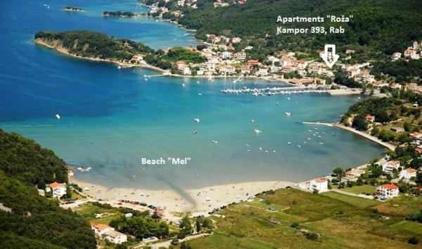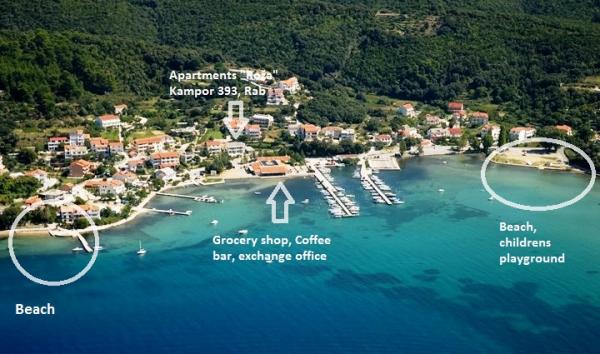 Apartamenty Roža znajdują się w jednej z najpiękniejszych zatok na wyspie Rab i oferują idealne miejsce do wypoczynku, tuż przy morzu - zaledwie 30 metrów od brzegu. Każdy apartament posiada taras z relaksującym widokiem na morze, idealny do delektowania się poranną kawą lub romantycznymi zachodami słońca. Znajdujemy się w samym centrum Kampor, gdzie wszystko jest w zasięgu ręki - sklepy, kawiarnie, restauracje. Piaszczysta plaża Mel, idealna dla rodzin z dziećmi, znajduje się zaledwie dziesięć minut spacerem, a najbliższe betonowe plaże są oddalone o zaledwie kilka minut spacerem. Zapraszamy do apartamentów Roža - miejsca, w którym morze, spokój i wygoda idą w parze!