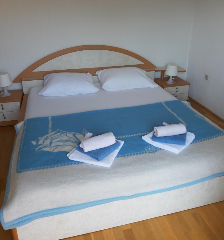 Apartamenty znajdują się w Kampor, 8 km od centrum wyspy Rab. Mają 4 sypialnie z 4 łazienkami, salon, kuchnię i duży balkon. Apartamenty są klimatyzowane, posiadają dostęp do internetu, TV / SAT, w pełni wyposażoną kuchnię i zmywarkę, odkurzacz i pralkę. Obiekt znajduje się zaledwie 100 metrów od piaszczystej plaży Mel.