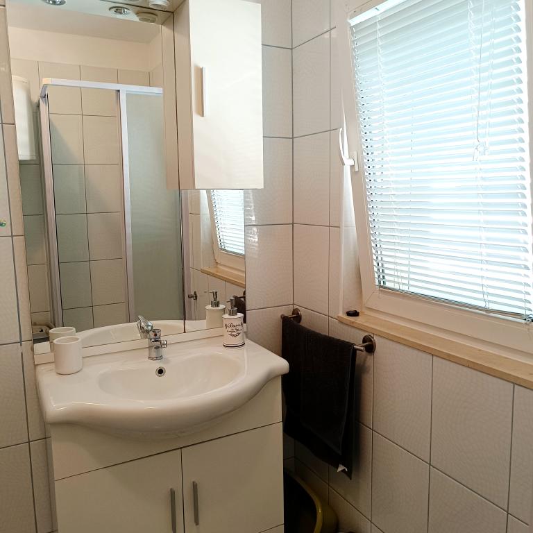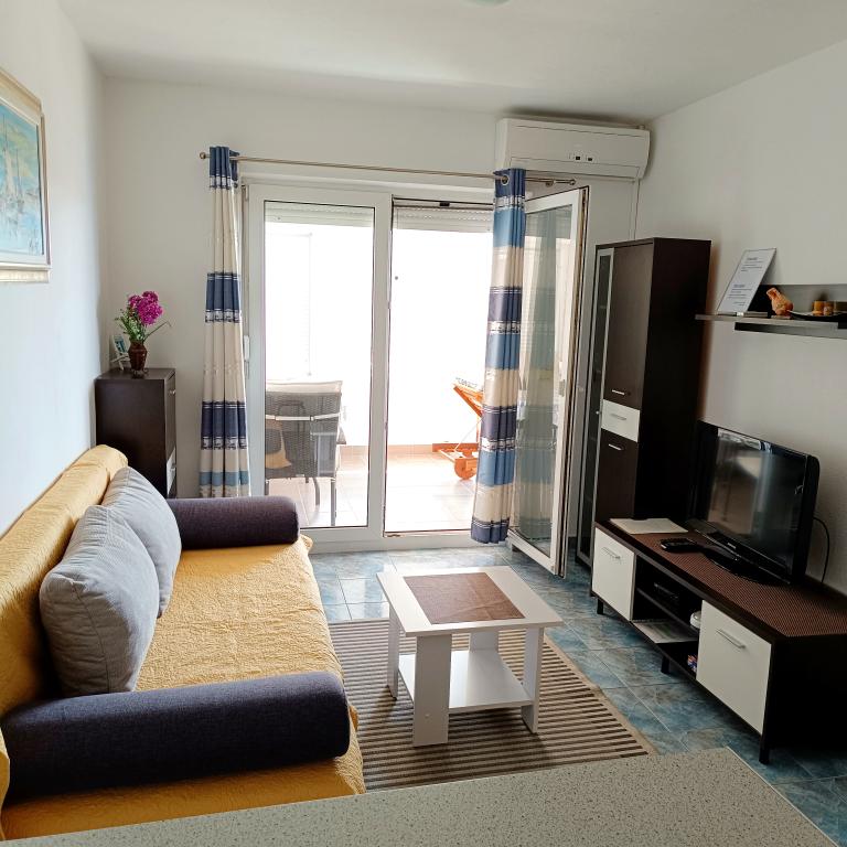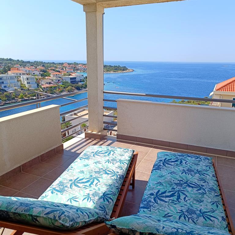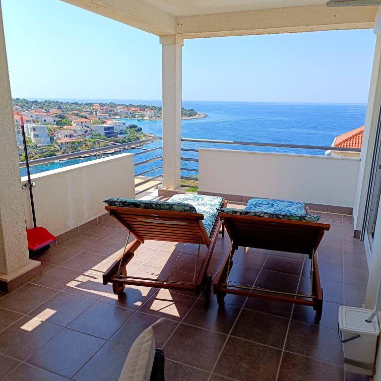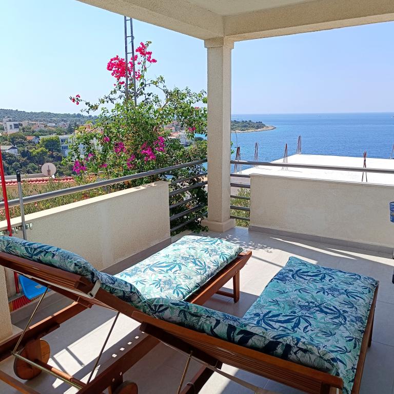 Apartament MATAN (Rogoznica-Kanica) Wygodny iw pełni wyposażony apartament, Wi-Fi, Klimatyzacja, Grill, Parking, apartament posiada własne osobne wejście i własny duży zadaszony taras o powierzchni 18 m2 z pięknym widokiem na morze, plażę jest 70 metrów stąd. Wyjątkowo czyste i czyste morze, cisza, spokój bez tłumów i hałasu samochodów oraz zachowana przyroda oferują naszym gościom pełen wypoczynek zarówno dla rodzin z dziećmi, jak i dla tych, którzy lubią spędzać wakacje w KLIMACIE.Apartamenty posiadają grill i bezpieczny parking obok do domu. Wszystko na wieczorne wyjście, rozrywkę i zakupy znajdziesz w Rogoznicy, Primošten i Trogirze. Plaże są żwirowe, kamienne i betonowe. Miejsce dobre dla miłośników wędkarstwa, spacerów i biegania rekreacyjnego. Powitanie