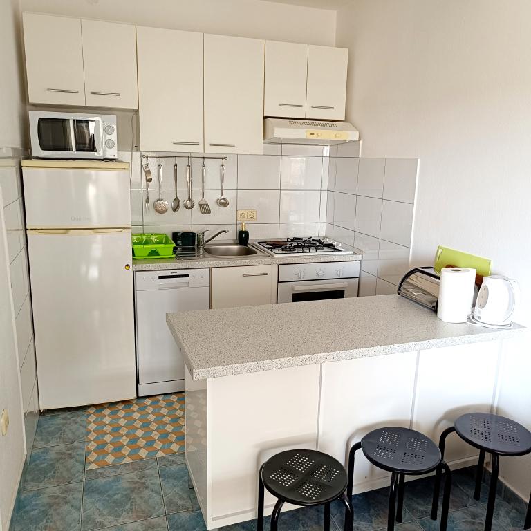 Naprawdę piękne miejsce, a także zbyt dobrzy właściciele mieszkań. Widok z apartamentu jest czymś nie do opisania, a cieszenie się otaczającym Cię błękitem to prawdziwa przyjemność. Mieszkanie jest dobrze wyposażone we wszystko co potrzebne do komfortowego pobytu.