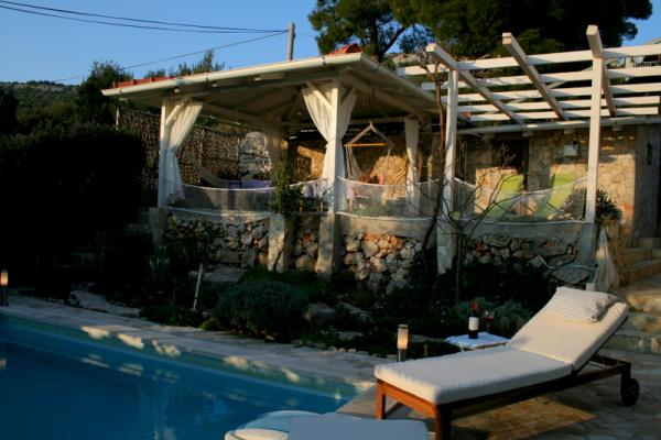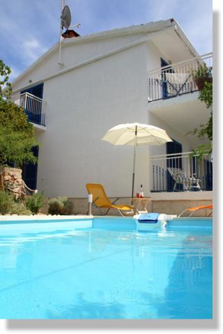 Dom z dwóch eleganckich apartamentów i basen 30m od plaży i dom z trzema mieszkaniami bez basenu 40m od plaży, na wyspie Capri, cichym Adriatyku wyspie z krystalicznie czyste morze i wspaniałe zachody słońca.
