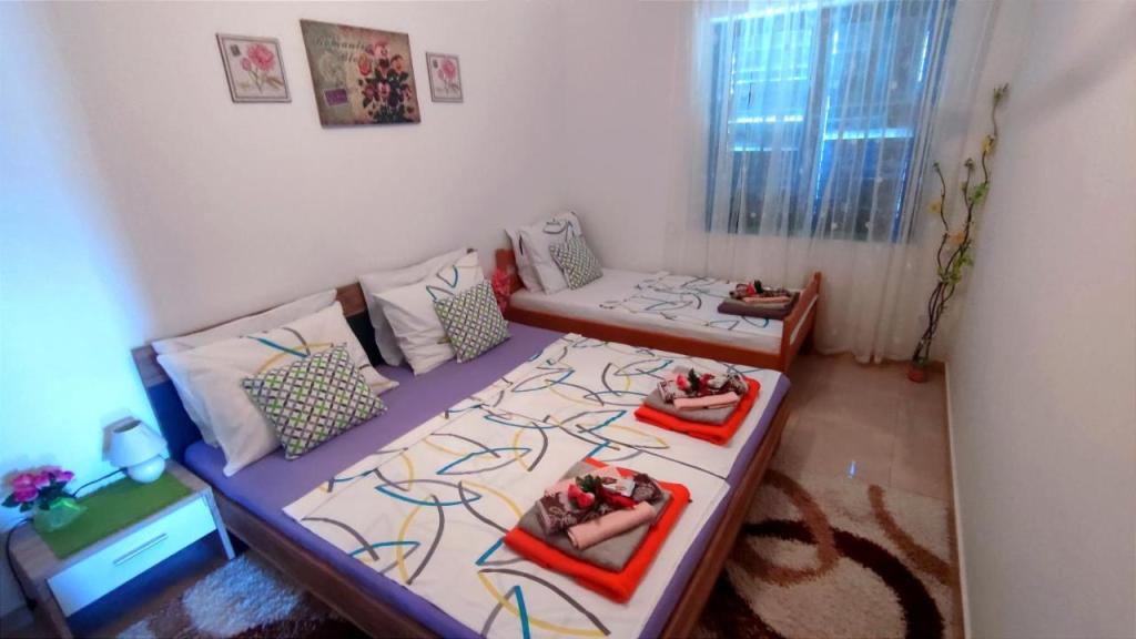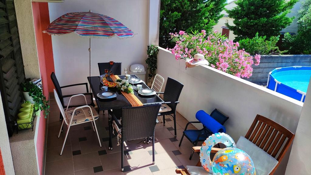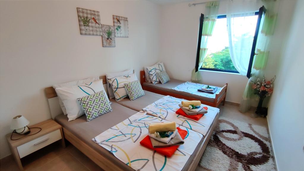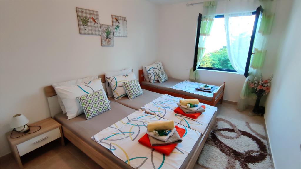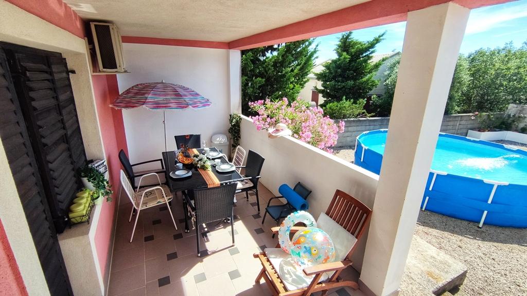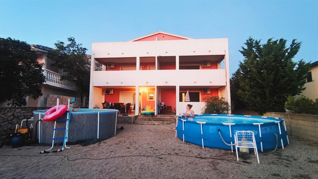 Apartamenty zlokalizowane są przy cichej ulicy, bez większego ruchu. Przed budynkiem znajduje się duży bezpłatny parking. Z obiektu roztacza się widok na wybrzeże morskie, wyspę Pag i piękne góry Velebit. Obiekt jest w pełni wyposażony, co gwarantuje przyjemny pobyt. Każdy apartament posiada pokój dzienny, jadalnię, kuchnię, łazienkę i sypialnię. Bezpłatny parking przed budynkiem. Do pierwszej plaży można dojść w 10 minut. Na podwórzu obiektu znajduje się prywatny bezpłatny basen, kącik grillowy ze stołem i krzesłami. Większość obiektów (sklepy, centrum rekreacji, plaże, apteka, restauracje, park dla dzieci, park wodny, rynek miejski i inne zabytki) znajduje się w pobliżu, więc nie potrzebujesz samochodu. W okresie letnim w mieście odbywa się program letni (przedstawienia teatralne, koncerty), organizowane są także jednodniowe przeprawy promowe na wyspę Pag. W pobliżu znajduje się kilka mniejszych miejsc, które warto odwiedzić, a także piękna zatoka Zavratnica.