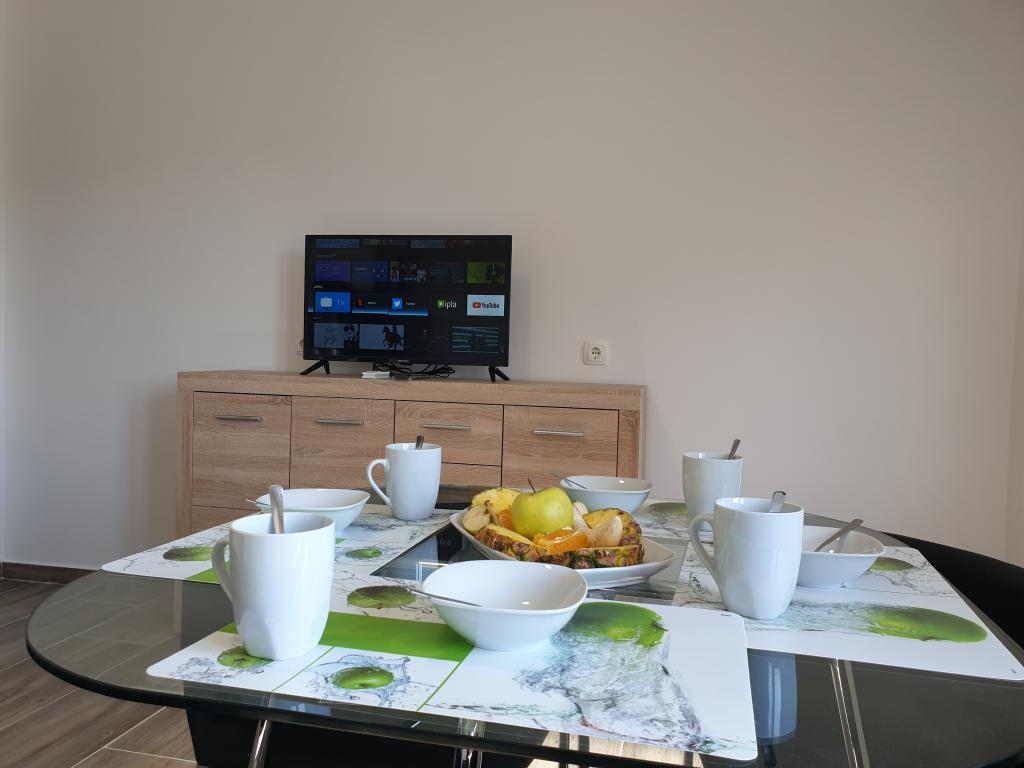 Apartamenty są w pełni wyposażone we wszystko, czego chce współczesny podróżnik, dzięki czemu będziesz mieć klimatyzację, telewizor LCD (z Androidem, Netflix, Youtube...), nieograniczony i szybki internet WIFI, całkowicie wyposażoną kuchnię, czajnik, kuchenka mikrofalowa, duża lodówka, grill i bezpłatny parking w naszych obiektach. Na bardzo dużym prywatnym tarasie przed każdym mieszkaniem można cieszyć się pięknym tarasem słonecznym i prysznicem na świeżym powietrzu. Ponadto możesz cieszyć się czasem spędzonym na grillu grillu, gdzie będziesz mógł przygotować pyszne posiłki dla swojej rodziny.
