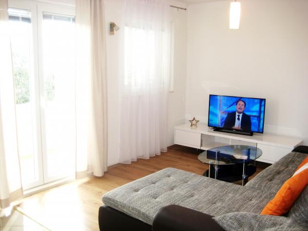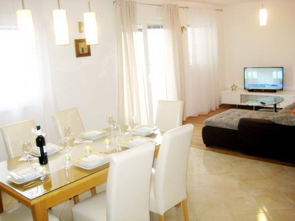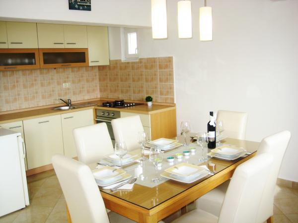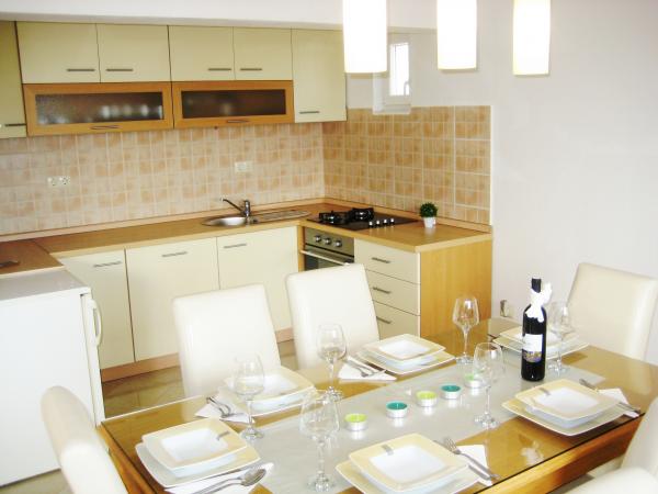 Apartament Antton przeznaczony jest do w sumie 8 osób. i znajduje się w domu w spokojnej części miejscowości Kastel Kambelovac i właśnie został odnowiony i komfortowo urządzone. Składa się z przestronnego salonu / kuchni i jadalni, 3 sypialnie i 2 łazienki. Każde okno w salonie i jadalni oferuje wspaniały widok na morze i drzew oliwnych, które znajdują się w ogrodzie. Można korzystać z grilla w ogrodzie, który jest otoczony przez gaje oliwne lub na tarasie z przepięknym widokiem. Mieszkanie ma trzy pokoje, jeden pokój ma dwa łóżka pojedyncze, a pozostałe 2 pokoje wyposażone są w podwójne łóżko. Obie łazienki są w pełni wyposażone, w tym pralką. Jedna łazienka z prysznicem i druga łazienka wyposażona jest w wannę. Apartament oferuje wszystkie udogodnienia, które w trakcie pobytu są potrzebne (darmowe Wi-Fi, klimatyzację, telewizję kablową, zmywarka, pralka, suszarka do włosów, deska do prasowania, ręczniki, pościel.). , Dwa prywatne parkingi są dostępne w przedniej części domu.