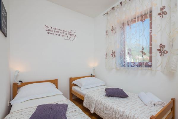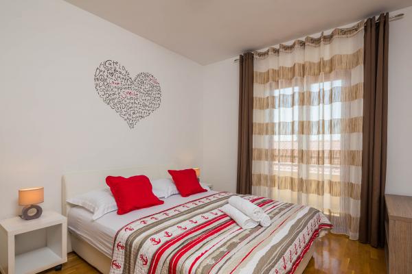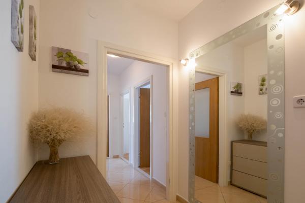Mieszkanie znajduje się na pierwszym piętrze z widokiem na morze. Ma trzy pokoje z podwójnym łóżkiem, łóżko dla dwóch osób znajdujących się w salonie, kuchnia, pokój dzienny, łazienka, WC, trzy balkony z widokiem na morze. Powierzchnia apartamentu to 90m2. Apartament znajduje się w zatoki Kastela, jednego z siedmiu wsiach Town zamku, w pobliżu słynnej przystani jesteś zdolny pomieścić łodzie prywatne i czarterowe, ale jest to miejsce dla wielu żeglarzy. Najbliższe placówki dostępne różne rodzaje barów, restauracji i sklepów. Jeśli szukasz mieszkania, który oferuje całkowicie relaksująca atmosfera blisko do morza, to trafiłeś we właściwe miejsce. Piękne plaże, łagodny, śródziemnomorski klimat, bogate w możliwości zabawy i rozrywki w luksusowym i umeblowane mieszkanie uczyni Państwa pobyt niezapomnianym. Za wszelkie rady i usług podczas hostingu prosimy o kontakt z gospodarzami, które są gotowe, aby pomóc Ci uzyskać jak najwięcej czasu na wakacje.