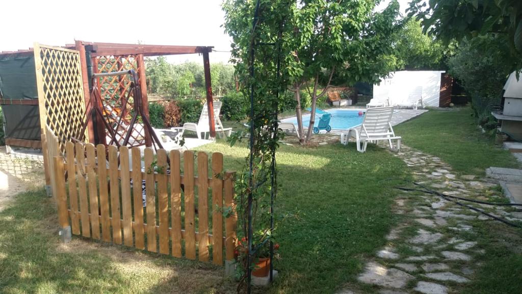Ponad 100 m2 powierzchni mieszkalnej, duży salon, jadalnia i kuchnia, 3 sypialnie i dwie łazienki, do mieszkania przynależy również taras o powierzchni 35 m2 oraz prywatny basen od południowej części ogrodu. W kuchni lodówka, zamrażarka, piekarnik, kuchenka elektryczna z 4 palnikami, sztućce, czajnik, mikrofalówka oraz woda pitna. W każdym pokoju również czysta pościel, szafy, żelazko i deska do prasowania, lustra. W salonie znajduje się TV SAT, klimatyzacja i szybkie WiFi (Internet). W łazience znajduje się pralka, suszarka do włosów, ręczniki, szampon itp. Istnieje również otwarty kominek, który idealnie nadaje się do grillowania. Do domu przynależy również sad i dwa miejsca parkingowe.