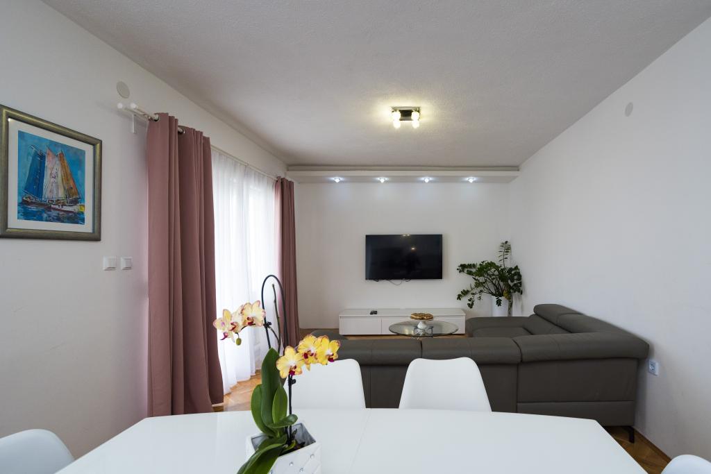 Witamy Was drodzy goście! Gdzieś pomiędzy niebem a morzem znajduje się apartament M&M PELIVAN. Znajduje się w Kaštel Kambelovac i jest oddalony o ok. 10 m od pierwszej plaży. Jest zorganizowany z dużą starannością. Klimatyzowany apartament posiada dobrze wyposażoną kuchnię, łazienkę, toaletę, dwie sypialnie idealne dla czterech osób oraz balkon z widokiem na morze. Złote słońce oświetla salon apartamentu. W pobliżu apartamentu znajduje się plac zabaw dla dzieci oraz plaża Bilajka z naturalnym cieniem. Lotnisko w Splicie oddalone jest od obiektu o ok. 7 km. Wpisane na Listę Światowego Dziedzictwa UNESCO miasta Split i Trogir oddalone są od obiektu o około 14 km. Z niecierpliwością czekamy na Ciebie.