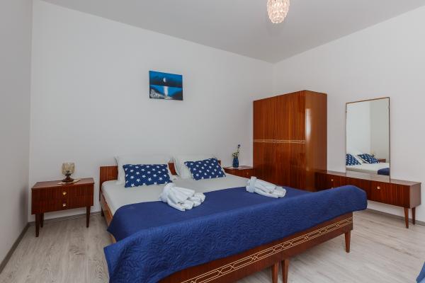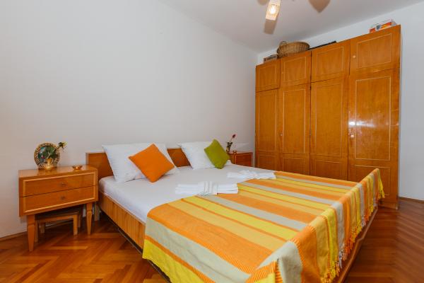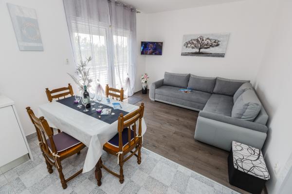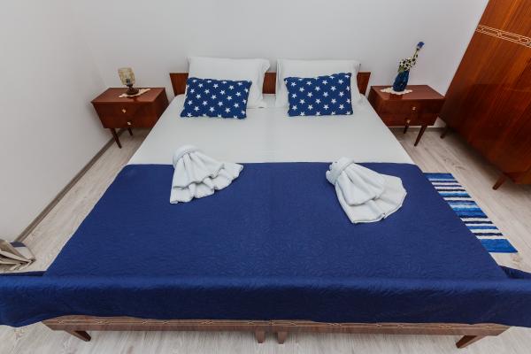 Apartament Nina znajduje się 3 minuty spacerem od długich piaszczystych plaż, kawiarni i restauracji nad morzem. Znajduje się w bezpośrednim sąsiedztwie rynku (100m), apteki (200m) i dworca autobusowego (100m). Odwiedź naszą Apartament Nina będziesz mieć swój prywatny parking, prywatne wejście i wszystko Apartament Nina obejmuje kuchnię ze zmywarką, jadalnię i salon z rozkładaną sofą, telewizorem i klimatyzacją, hol prowadzący do 3 sypialni i 1 wspólną łazienką z pralką oraz duży balkon, do którego można wejść z salonu i sypialni. trzeci Każdy pokój może pomieścić 2 osoby: Pokój 1 .: 2 x łóżka pojedyncze Pokój 2: 1 x łóżko małżeńskie Pokój 3 .: 1 x łóżko małżeńskie (z balkonem) Salon: 1 sofa rozkładana (dla 2 osób)