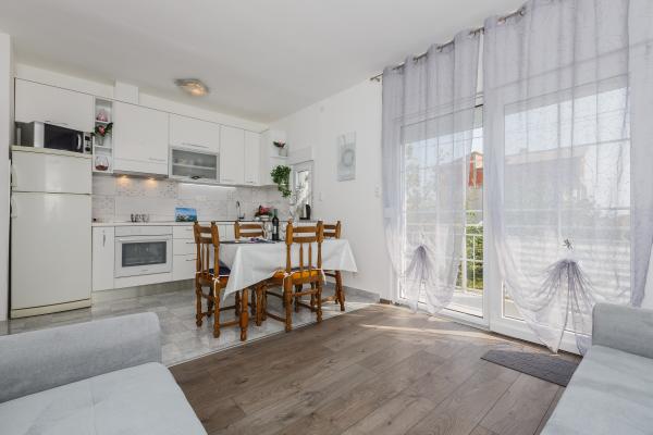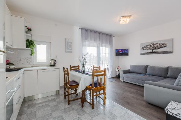 Opłata jest wliczone w cenę.Goście mają dostęp do prywatnego parkingu i bezprzewodowego dostępu do Internetu. Parking i Wi-Fi są wliczone w cenę. Apartament Nina znajduje się w doskonałej lokalizacji, można patrzeć na odległość: - miejsce na plaży (400 m) - Restauracja (60 m) - Przystanek autobusowy (350 m) - Główna droga (50 m) - rynek (100 m) - Lotnisko w Splicie (6, 9 km) - Split Prom (17, 1 km) - Stare Miasto w Splicie (16, 8 km) - Stare Miasto Trogir (12 km)