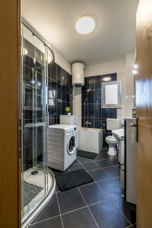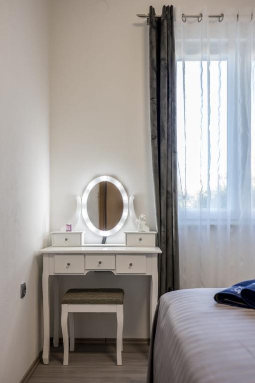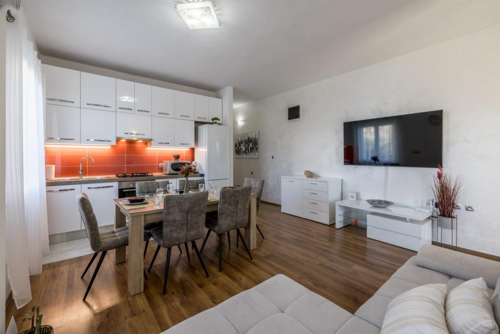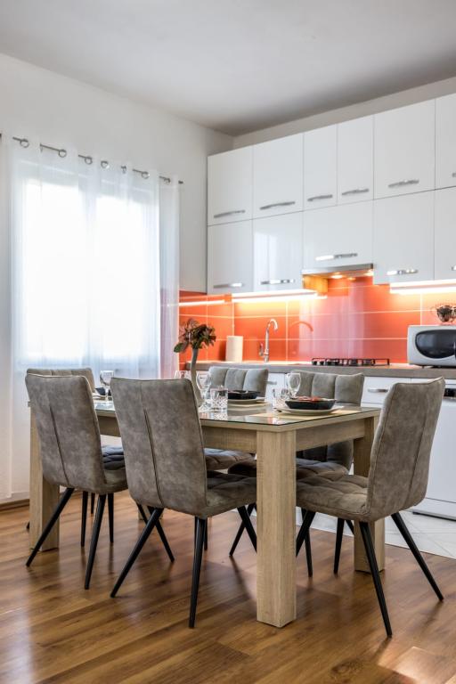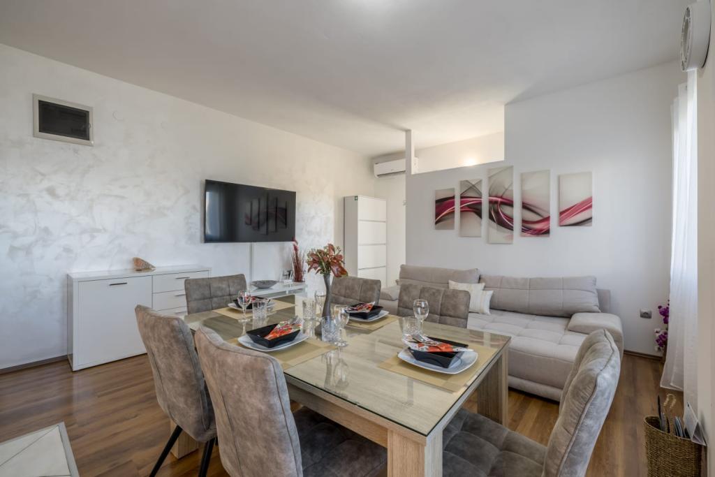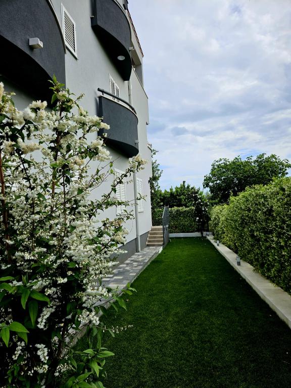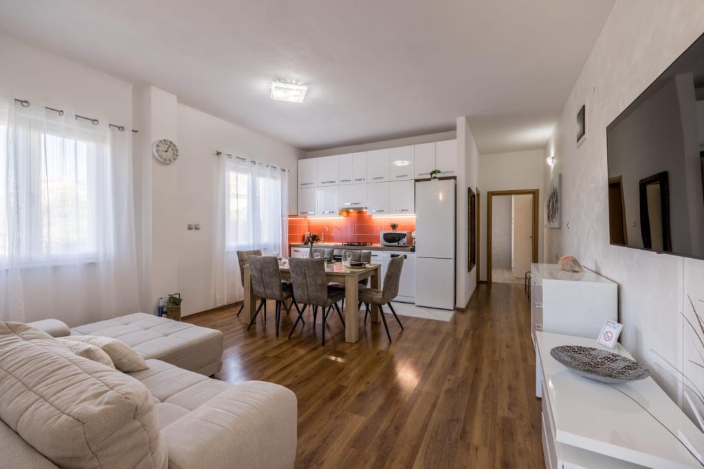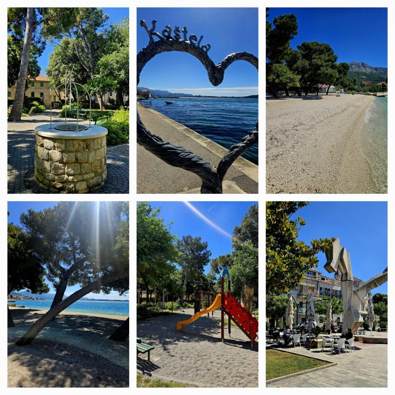 Apartament jest w pełni wyposażony w niezbędne urządzenia. Goście mogą korzystać z grilla na świeżym powietrzu, a dzieci mogą bawić się na pięknym trawniku przed apartamentem. Wszystko, czego potrzebujesz: restauracje, sklepy, poczta, przystanek autobusowy, kawiarnie znajdują się 5 minut spacerem, a plaża kamienista jest 10 minut od apartamentu. W pobliżu znajdują się również parki i obiekty sportowe. Lato w Kaštela jest pełne wydarzeń kulturalnych i imprez, a miasto jest szczególnie znane ze swoich starych zamków i wież. Oferta gastronomiczna jest bogata w dania rybne i lokalne specjały. Apartament znajduje się w cichym otoczeniu, a jednocześnie blisko wszystkich udogodnień potrzebnych do relaksu i rozrywki.