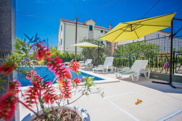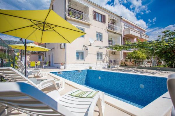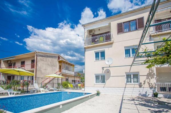 Ciepłe zalecenia, zwłaszcza jeśli masz małe dziecko lub dzieci. Podwórko jest pięknie zagospodarowany, basen idealnie czysty, apartamenty są wyposażone we wszystko, czego potrzebujesz, aby zatrzymać się, przywitał nas wszystko schludne i czyste. Gospodarze są ciepły, przyjazny i zawsze chętny do pomocy. Mieszkaliśmy w apartamencie z widokiem na morze, idealne miejsce na poranną kawę. Morze jest czyste i plaże są czyste. Środowisko wzdłuż plaży jest bardzo ładnie urządzone. Najbliższe znaleźliśmy kilka dobrych restauracji (szkoła baletowa, wakacje), z bardzo dobrych cen żywności i normalnych, blisko do sklepów, a nawet Split i Trogir nie jest daleko. Ta rodzina jest najlepszym przykładem tego, jak angażować się w turystyce. Wszelkie pochwały !!! :)