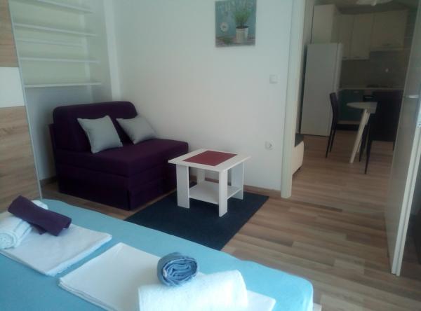 Nowe i nowoczesne iw pełni wyposażone apartamenty z przestronnymi tarasami, położone w bezpośrednim sąsiedztwie plaży, 5 minut spacerem, z widokiem na morze. W pobliżu znajdują się sklepy, apteka i lokalny dworzec autobusowy, a do centrum można dojść w 10 minut. , Istnieją miejsca parkingowe dla wszystkich jednostek mieszkalnych, klimatyzacja, Wi-Fi, zmywarki i pralnia i wiele innych urządzeń.