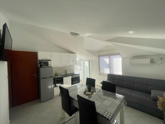 Zajmowałyśmy apartament 4+2, bardzo wygodny ze wszelkimi niezbędnymi udogodnieniami. Apartament z dwoma słonecznymi balkonami, obszernymi sypialniami, dużą łazienką i kuchnią w pełni wyposażoną w niezbędny sprzęt. Na miejscu - parking. Zarówno sam apartament, jego otoczenie, jak i basen są wyjątkowo zadbane. W pobliży znajdują się sklepy spożywcze, kantor, przystanek autobusowy. W odległości 10 minut spacerem - plaża, restauracje i kawiarnie. I jeszcze kilka słów na temat Gospodarza: to człowiek bardzo dbający nie tylko o swój apartament, ale również o gości. W chwili kryzysowej niezwykle pomocny i empatyczny! Bardzo dziękujemy za gościnę i życzymy Panu Zoranowi powodzenia! B.G.A. i A.