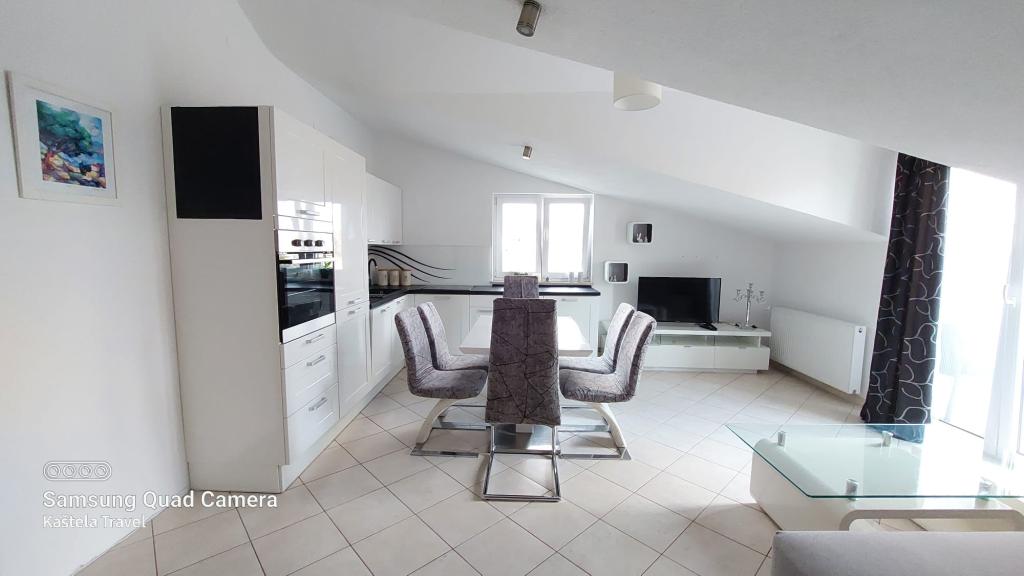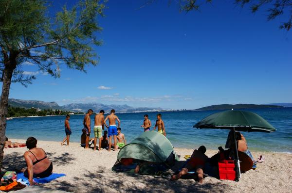 W pełni wyposażone apartamenty w pobliżu miast UNESCO Trogir i Split. Zaledwie 50 metrów od piaszczystych plaż nadających się do małych dzieci. Dom posiada w sumie 3 apartamenty dla maksymalnie 11 osób. Goście mogą korzystać z bezpłatnego parkingu, Wi-Fi i grilla.