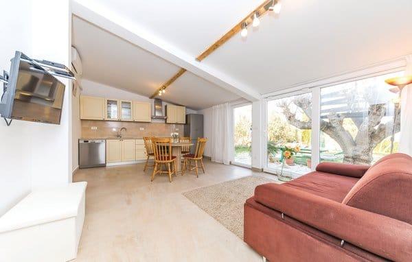 Nowocześnie wyposażony apartament dla 2 (+2) osób w spokojnej okolicy, 500 m od morza. Posiada bezpłatny parking, Wi-Fi i klimatyzację. Znajduje się w oddzielnej części domu, z osobnym wejściem. Zaledwie kilka minut spacerem znajduje się plaża żwirowa i kawiarnia. Witamy. :)