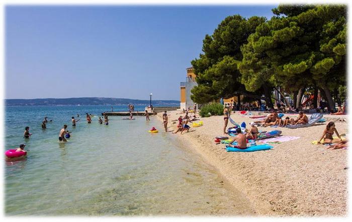 Apartamenty Sea Sunny są idealne dla rodzin z dziećmi lub par. Dzięki doskonałej lokalizacji jest idealnym wyborem na wakacje - tylko 30 m od długiej, piaszczystej plaży odpowiedniej dla dzieci, ze słynną restauracją z tradycyjną kuchnią dalmatyńską i kawiarnią na plaży. W pobliżu centrum miasta, supermarkety, targ ze świeżymi warzywami i owocami oraz sklep spożywczy, apteka, dworzec autobusowy, stacja benzynowa itp. W jednym mieszkaniu mogą zamieszkać 4 osoby. Każdy apartament posiada jedno podwójne łóżko i jedną rozkładaną sofę dla dwóch osób. W apartamentach znajduje się również salon z częścią wypoczynkową, telewizorem, klimatyzacją i bezprzewodowym dostępem do Internetu, w pełni wyposażona kuchnia oraz łazienka z prysznicem. Na zewnątrz mieszkania znajduje się taras i część wypoczynkowa z widokiem na góry (góra Kozjak). Goście mogą bezpłatnie korzystać ze wszystkiego, co zawiera apartament, w tym bezpłatnego Wi-Fi, klimatyzacji i parkingu przed apartamentem.