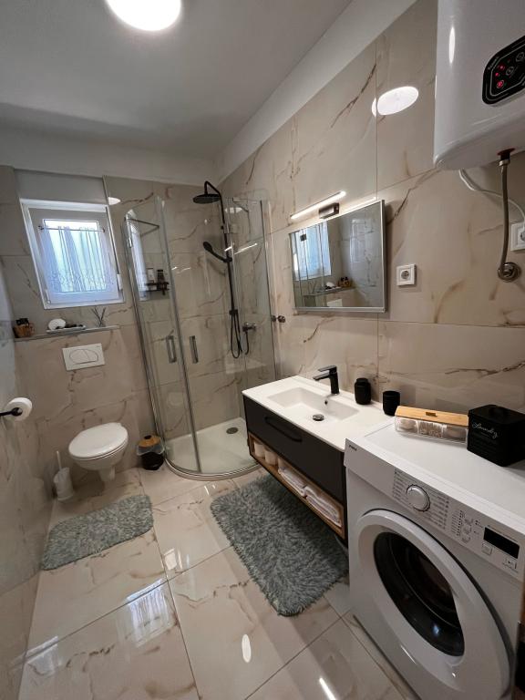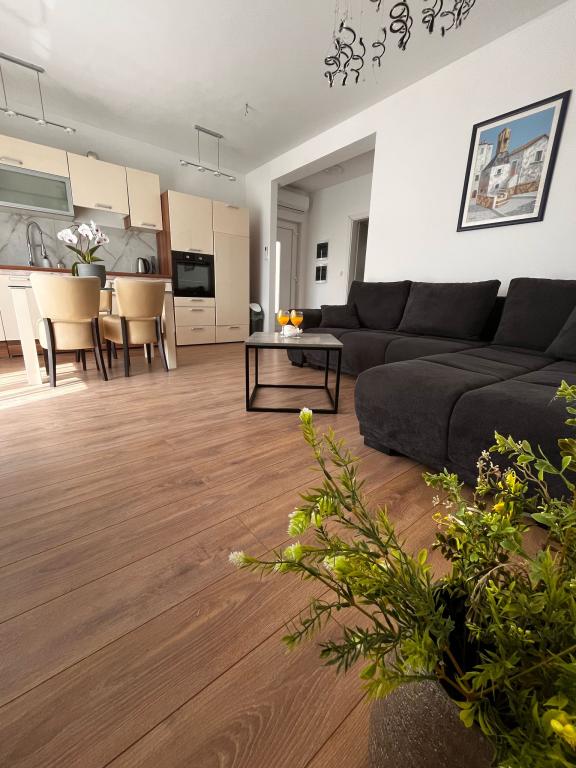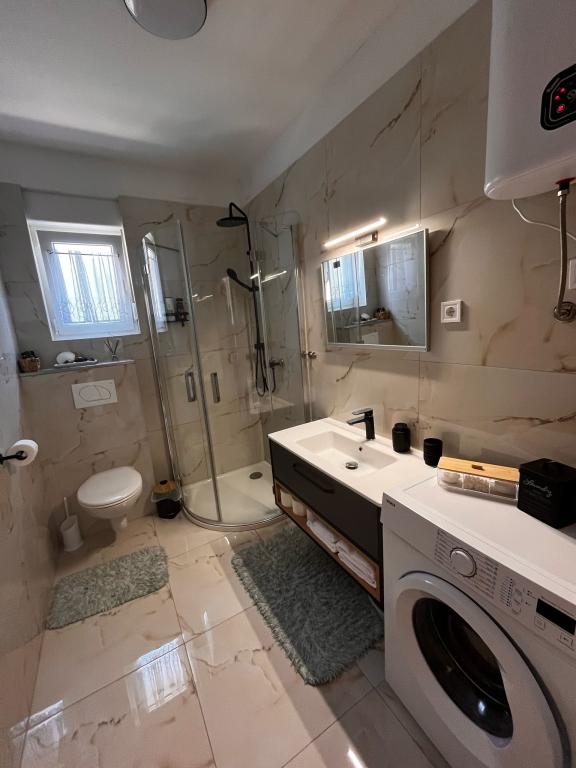 Apartament ten znajduje się w centrum Kaštel Gomilica, dokładnie 11 km od 2 miast wpisanych na Listę Światowego Dziedzictwa UNESCO, Splitu i Trogiru. W pobliżu apartamentu znajduje się popularny zamek Kaštilac z XVI wieku. Mieszkanie znajduje się na parterze nowo wybudowanego domu rodzinnego, oferuje bezpłatne WiFi, bezpłatny prywatny parking, klimatyzację, 1 sypialnię i 2 sypialnie, łazienkę, luksusowy salon i nowoczesną kuchnię w pełni wyposażoną z salonem pokój i salon z telewizorem. Lokalizacja jest idealna dla rodzin z dziećmi, które lubią długie spacery i przejażdżki rowerowe wzdłuż morza po wszystkich 7 częściach miasta Kaštela.