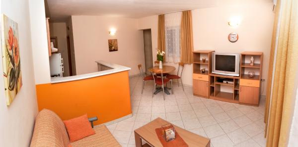 Opłata jest wliczone w cenę.Komarna to małe miasteczko turystyczne położone w południowej części Dalmacji. To jest tylko siedem kilometrów od miejsca, gdzie rzeki Neretwy wpada do Morza Adriatyckiego, 70 km od wybrzeża chorwackiego perły Dubrownika i 120 km od Splitu Dioklecjana. Miejsce jest ciche i bezpieczne, a zatem nadaje się na rodzinne wakacje i relaks. Z Komarna roztacza się wspaniały widok na pobliskie półwyspu Peljesac i innych wysp. Ludność tej wsi są zaangażowani wyłącznie w turystyce i dlatego oferują wspaniałe apartamenty. W Komarna i ośrodki, które są blisko, Radelj, gwałtów i Klek mogą spróbować doskonale przygotowanych potraw z ryb, skorupiaków, szynka, ser, wino i oliwę z oliwek.