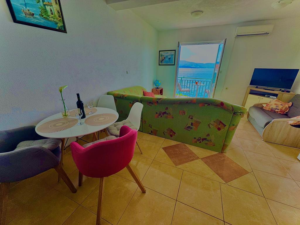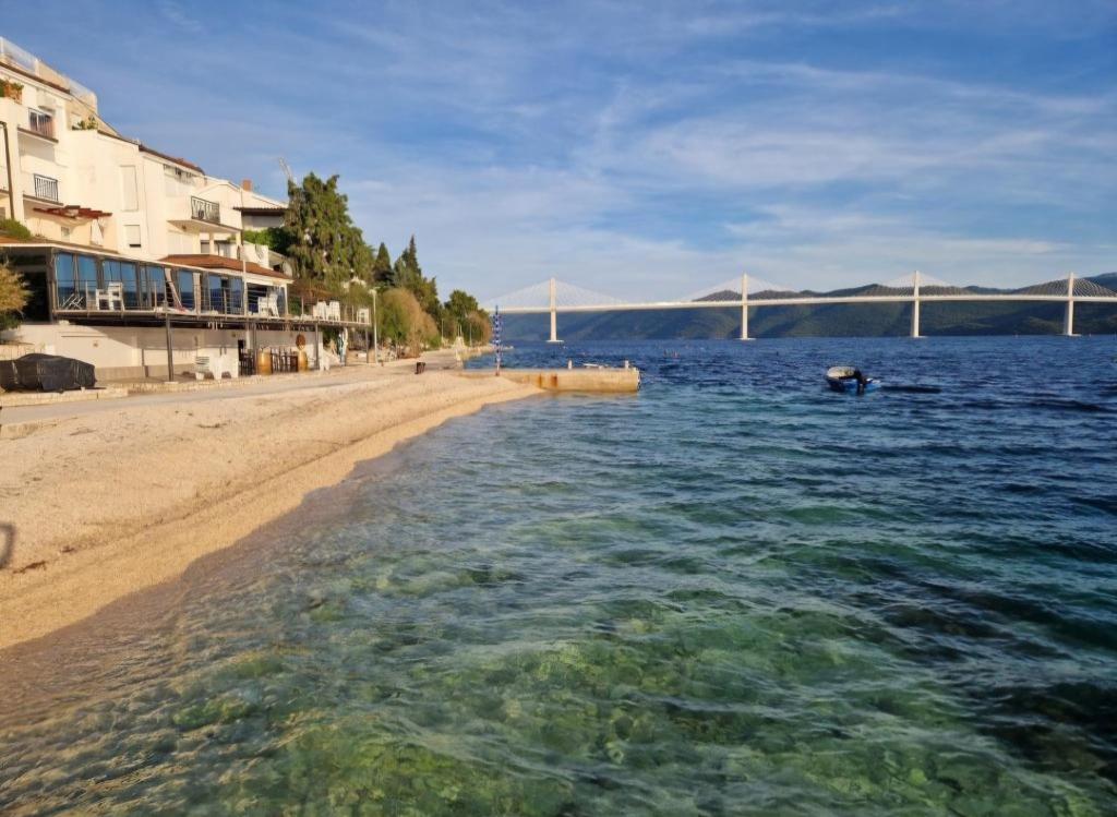 Dom 15 m od morza, 70 km na północ od DUBROWNIKA, kamieniste plaże 1 minutę spacerem od domu, sklep spożywczy /pieczywo, mleko itp./ zaledwie 50 m od domu, plac zabaw dla dzieci 50 m itp. Wszystkie apartamenty mają tarasy z widokiem na morze /stoły i krzesła/, widok na morze, zachody słońca. Apartamenty są w pełni i nowocześnie umeblowane, klimatyzowane, bezpłatny internet WIFI, płaski telewizor SAT, miejsce parkingowe lub garaż na samochód, grill na świeżym powietrzu i ogród. Apartamenty posiadają: sypialnię, kompletną kuchnię z jadalnią, salon, w którym znajduje się dodatkowe łóżko, łazienkę z prysznicem, toaletę (pralka, suszarka do włosów, pościel i ręczniki). Przy dłuższym wynajmie apartamentu udzielamy rabatu /rezerwacja 14 dni rabat 5%/, a przy 3 tygodniach rabat 10%. Dostarczamy czystą pościel po 7 dniach. Restauracje BRIDGE i Storija z rybami i innymi specjałami 50 m od domu, a także słynne winiarnie, promenada nad morzem, plac zabaw dla dzieci 100 m od domu Zapraszamy!