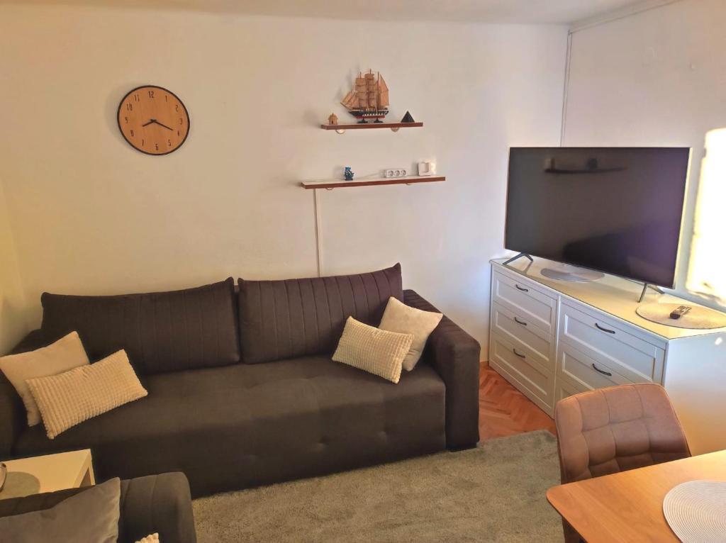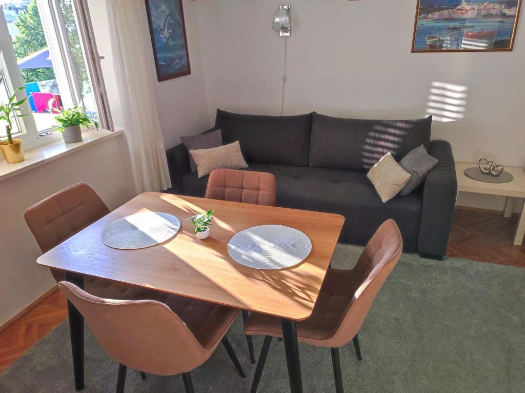 Apartament Riva w miejscowości Klenovica koło miasta Novi Vinodolski położony jest zaledwie kilka kroków od morza. W pobliżu znajdują się wszystkie niezbędne udogodnienia, a plaże są oddalone o zaledwie kilka minut spacerem wzdłuż morza. Oba apartamenty są w pełni wyposażone i zawierają wszystko, czego potrzeba do przyjemnego wypoczynku. Apartament na parterze: WiFi, IPTV, telewizja satelitarna, Netflix, smart TV UHD, grill, pralka, wyposażona kuchnia, przestronny taras i bezpłatne miejsce parkingowe. Apartament może pomieścić do 5 osób, w pokoju znajduje się łóżko o wymiarach 160x200 cm i łóżko o wymiarach 80x200 cm, a w salonie wygodna rozkładana sofa o wymiarach 150x200 cm. Apartament na pierwszym piętrze: WiFi, IPTV, Netflix, smart TV UHD, grill, wyposażona kuchnia, przestronny taras do wypoczynku i bezpłatne miejsce parkingowe. Apartament może pomieścić maksymalnie 5 osób, w pokoju znajduje się łóżko o wymiarach 160x200 cm, a w salonie znajdują się 2 nowe wygodne sofy o wymiarach 160x200 cm.