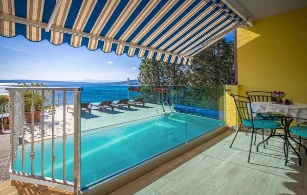 Mieszkanie znajduje się na parterze domu rodzinnego w cichej, nadmorskiej, rybackiej wiosce Klenovica. Nowoczesny i bogato wyposażony według wysokich standardów z własnym odkrytym basenem, z którego korzystają wyłącznie goście tego apartamentu. Oprócz basenu apartament posiada dwa tarasy; jeden duży taras posiada panoramiczny widok na morze, a drugi, mniejszy taras posiada grill. Na obu tarasach masz spokój i prywatność. Do apartamentu przynależą dwa miejsca parkingowe. Zakwaterowanie w apartamentach jest korzystne, jeśli chcesz odwiedzić parki narodowe lub pobliskie wyspy, na przykład Krk, Lošinj, Rab lub Cres, a także organizowane są wycieczki turystyczne statkiem z centrum miasta. W apartamencie akceptowane są maksymalnie dwa zwierzęta. Plaża dla psów oddalona jest o około 7 minut. jazdy od mieszkania. Mieszkanie jest dobrze ogrodzone na obu tarasach, co jest wygodne dla małych dzieci i zwierząt. Mieszkanie na pierwszym piętrze ma 4 łóżka, jest nowoczesne i dobrze wyposażone. Z basenu nie można korzystać, chyba że jest to grupa tej samej rodziny lub przyjaciół. Balkon, parking, widok na morze, klimatyzacja, int