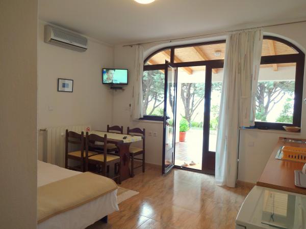 Willa Marlin znajduje się w spokojnej okolicy, 200 metrów od morza w Klenovica, spokojnej wiosce rybackiej zaledwie 15 minut jazdy od Novi Vinodolski. Obiekt oferuje apartamenty z klimatyzacją i tarasem z widokiem na morze. W budynku znajduje się duży basen, który jest dostępny dla wszystkich gości i duży dziedziniec z miejscem do siedzenia i dwa grill. Wszystkie apartamenty wyposażone są w kuchnię, jadalnię i salon z telewizorem z dostępem do kanałów telewizji satelitarnej. Musisz się łazienka i taras. Najbliższy sklep spożywczy i restauracje serwujące dania z ryb, lokalne specjały są 100 metrów od hotelu Villa Marlin. Główny dworzec autobusowy w Novi Vinodolski jest 8 km. Krk Lotnisko znajduje się 25 km od obiektu, a na życzenie możliwe jest zorganizować transport z lotniska. Jako część obiektu dostępny jest bezpłatny parking. Witamy!