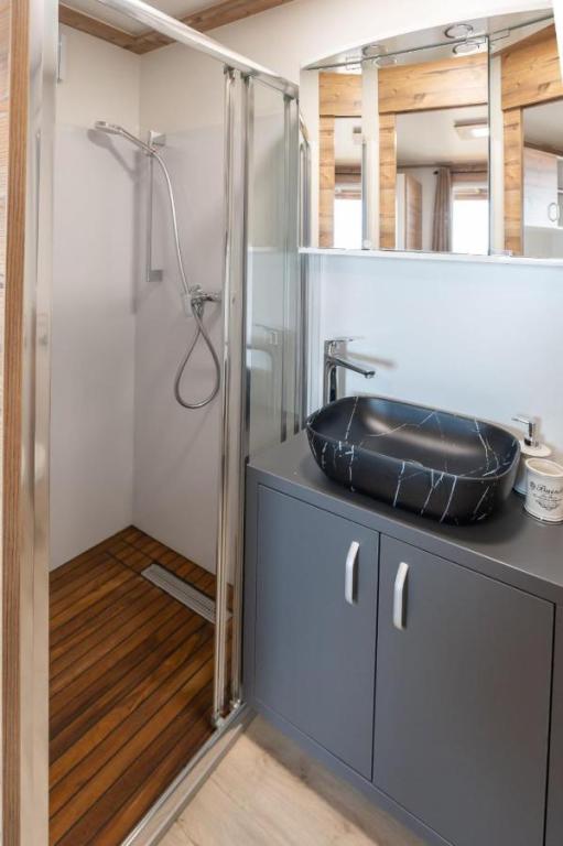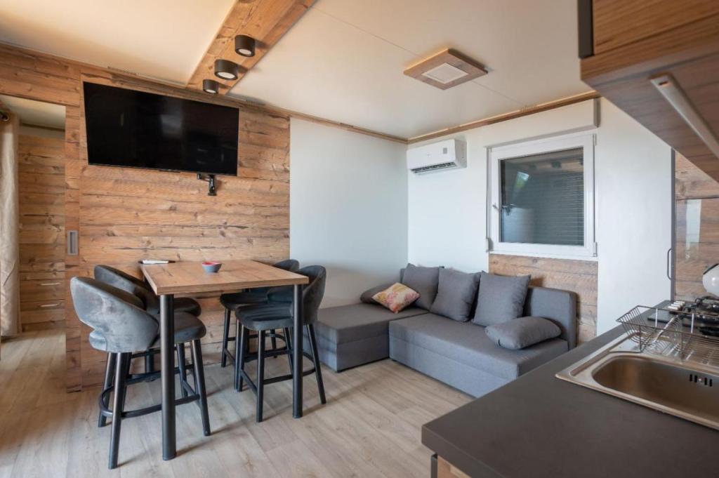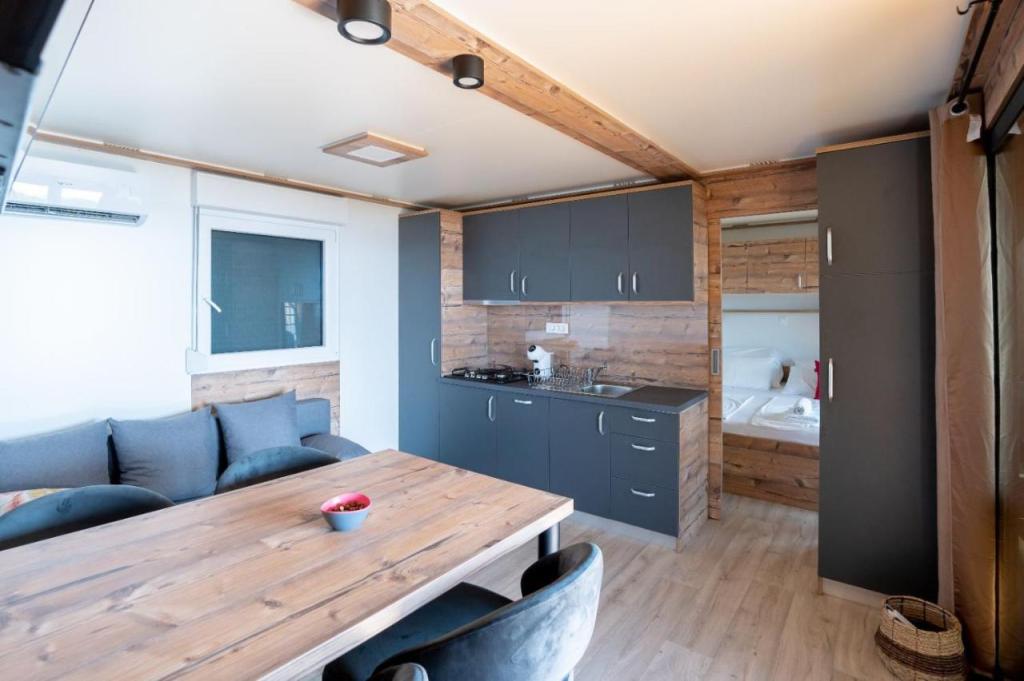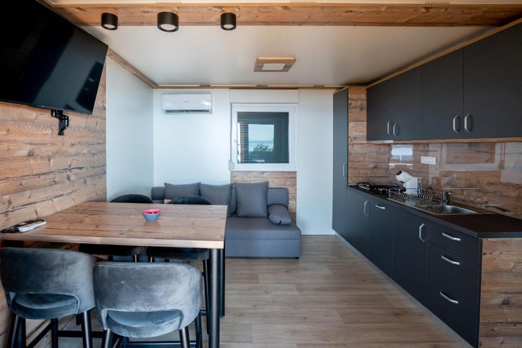 Do wynajęcia luksusowo wyposażona przyczepa stacjonarna z pięknym widokiem na morze, idealna na idealne wakacje. Nasz domek oferuje idealne połączenie komfortu i naturalnego piękna, pozwalając na całkowity relaks i dobrą zabawę. Codziennie możesz cieszyć się wspaniałym widokiem na morze z przestronnego tarasu, wyposażonego w wygodne meble, idealnego do siedzenia i relaksu, a także do spędzania czasu z rodziną i przyjaciółmi. Domek mobilny ma wszystko, czego potrzebujesz do komfortowego pobytu, w tym nowoczesną kuchnię, stylową łazienkę i szybką sieć WIFI zapewniającą nieprzerwaną łączność. Znajduje się zaledwie kilka kroków od krystalicznie czystego morza i pięknej plaży, co zapewnia łatwy dostęp do atrakcji morskich. Parking strzeżony zapewni Ci całkowity spokój podczas całego pobytu. Dodatkowo do Państwa dyspozycji jest także grill, z którego można przygotować pyszne posiłki na świeżym powietrzu. Ta przyczepa stacjonarna to idealne miejsce na Twoje następne wakacje. Nie przegap okazji i zarezerwuj pobyt już dziś!