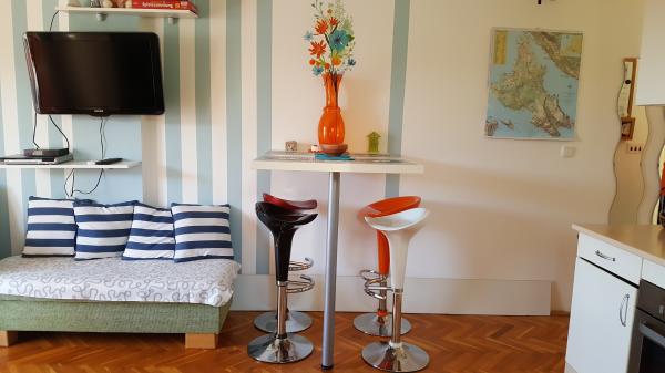 Mieszkanie jest ładne i czyste, i zawierają wszystko już wskazano w opisie. Plaża jest blisko i łatwo dostępne, co jest dobre dla wszystkich tych, którzy są na wakacjach z dziećmi, ale także dla tych, którzy nie chcą się opalać, bo można tylko iść pływać i powrót na taras z leżakami w mieszkaniu, które jest zawsze w cieniu i widokiem na morze. Klimno to mała miejscowość, która nie nadaje się do aktywnego wypoczynku, ale na spokojny wypoczynek. We wsi znajduje się piekarnia oraz trzy bary, gdzie można go dostać coś do jedzenia, tak długo jak nie gotować w mieszkaniu.
