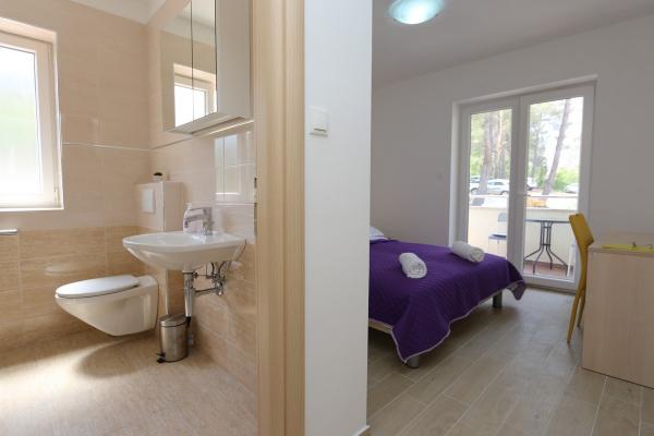 Dom z wieloma apartamentami. W małej wiosce Soline 1 km od centrum Klimno, słoneczne położenie, 70 m od morza, 70 m od plaży, przejście przez ulicę. Do wspólnego użytku: teren 800 m2. W domu: dostęp do internetu, bilard, piłkarzyki (do wspólnego użytku). Parking przy domu na działce. Sklep 900 m, restauracja 1 km, plaża żwirowa, plaża betonowa 70 m. Apartament 67 m2, na 1. piętrze. Salon / jadalnia 25 m2 z 1 dwuosobową kanapą i TV (satelitarna). (telewizor z płaskim ekranem), klimatyzacja. Wyjdź na balkon. 2 pokoje, każdy pokój z 1 łóżkiem podwójnym (2 x 80 cm, o długości 200 cm), prysznicem / bidetem / WC i klimatyzacją. Wyjdź na balkon. Otwarta kuchnia (piekarnik, zmywarka do naczyń, 4 palniki szklano-ceramiczne, zamrażarka, ekspres do kawy, czajnik elektryczny). Balkon 11 m2, balkon 5 m2. Meble balkonowe. Do dyspozycji: sejf, łóżeczko dla dziecka. Internet (bezprzewodowa sieć LAN [WLAN] za darmo). 1 zwierzak / pies dozwolony.