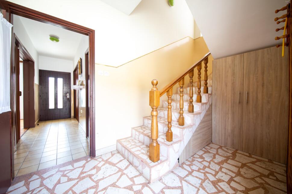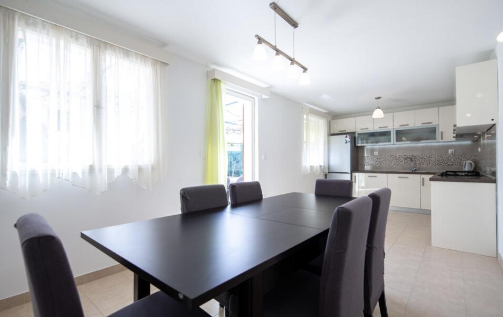 Dom położony jest w bezpośrednim sąsiedztwie hotelu i zaledwie kilka kroków od plaży Gusarica. Na parterze domu znajduje się łazienka oraz duży, klimatyzowany salon z dwiema kanapami, w którym mogą nocować dwie dodatkowe osoby. Na pierwszym piętrze znajdują się trzy klimatyzowane sypialnie, z czego dwie mają dostęp do balkonu i widoku na morze, Komižę i wyspę Biševo. Na tym samym piętrze znajduje się również druga łazienka wyposażona w pralkę. Z salonu można wyjść na letni taras o powierzchni 30 m2 oraz całkowicie odnowioną kuchnię.