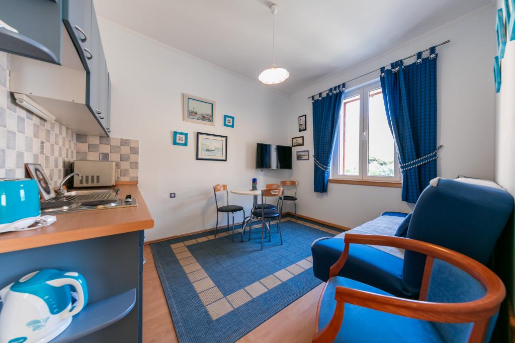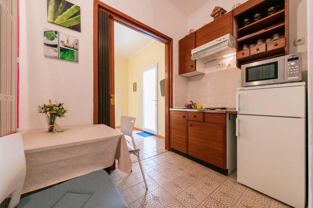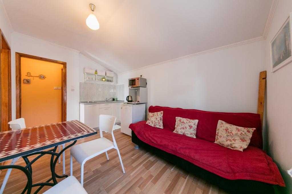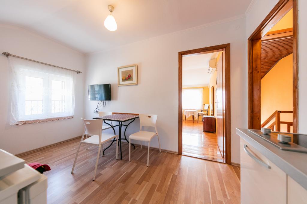 Dom Kastelani został zbudowany jeszcze w 1939 roku, kilkakrotnie remontowany, aw 2016 roku otrzymał fasadę termiczną, dzięki czemu przyjemnie się w nim przebywa podczas upalnych letnich miesięcy. Oferujemy 3 apartamenty i 1 apartament typu studio nazwany imieniem naszych wnuków: Alen, Izabela, Roko i Sofia. Kawalerka Sofia i apartament Alen znajdują się na parterze i są przeznaczone na pobyt dla 2 osób; Apartament Izabela znajduje się na 1 piętrze (2 + 1), a apartament Roko na 2 piętrze (2 + 1). Wszystkie jednostki są klimatyzowane, oferują bezprzewodowy internet, parking publiczny znajduje się 100 m od domu, również parking prywatny (rezerwacja + opłata). Taras do opalania i relaksu znajduje się na poziomie 1 piętra naszego budynku i jest dostępny dla gości 1 i 2 piętra. Apartamenty Kastelani znajdują się w spokojnej okolicy, 300 m od centrum, pięknej plaży "Kamenice" i miejskiej plaży "Lucica" oraz centrum nurkowego B-24.