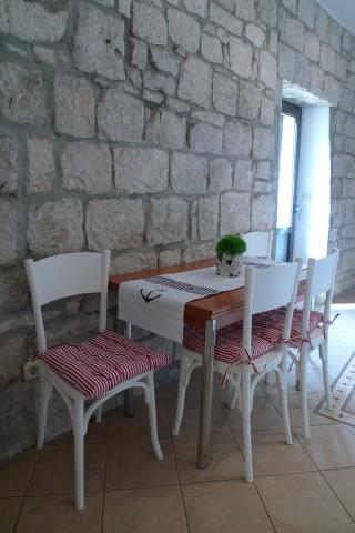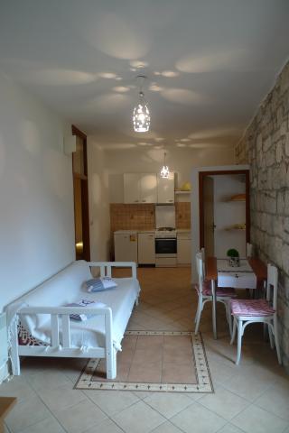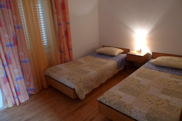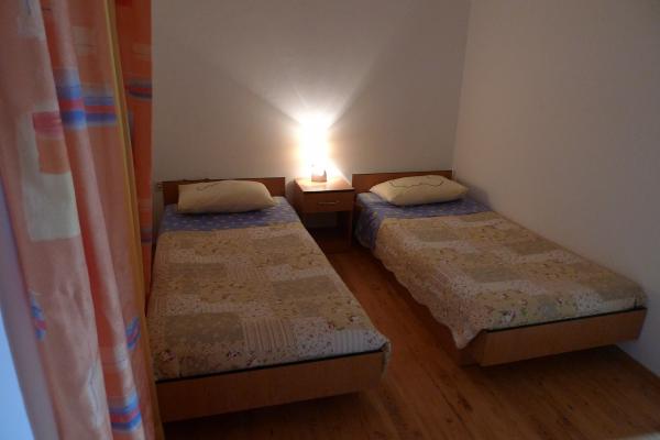 Mieszkanie znajduje się na pierwszym piętrze, ma 55 m2. Składa się z dwóch sypialni; jedna z podwójnym łóżkiem, druga z dwoma pojedynczymi łóżkami, które mogą być również spojiti.U pokój dzienny z dostawką dla piątej osoby. Kuchnia jest w pełni wyposażona. W łazience znajduje się prysznic. Mieszkanie posiada mały balkon od strony zachodniej, gdzie można podziwiać zachody słońca. Apartament posiada klimatyzację, tv i wifi wszystkim być wykorzystywane nieodpłatnie.