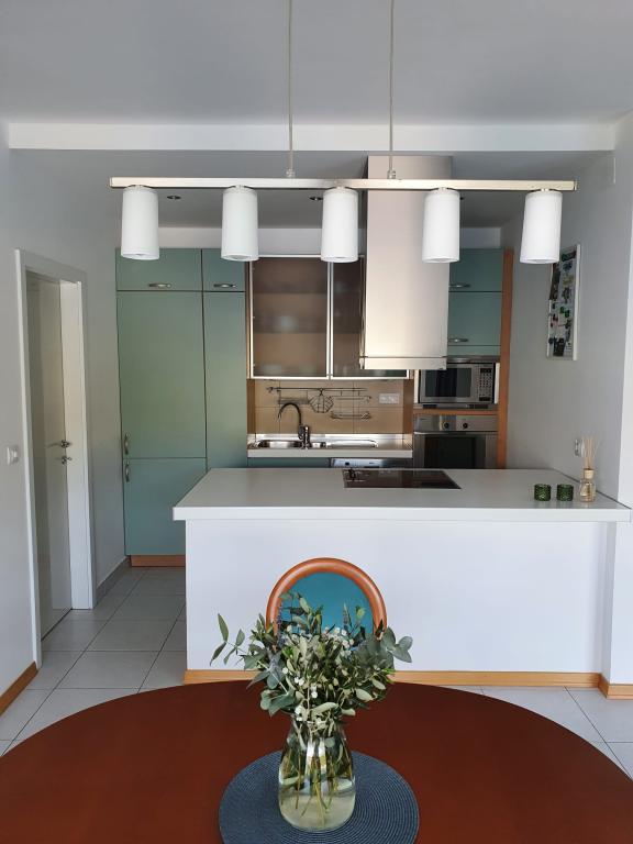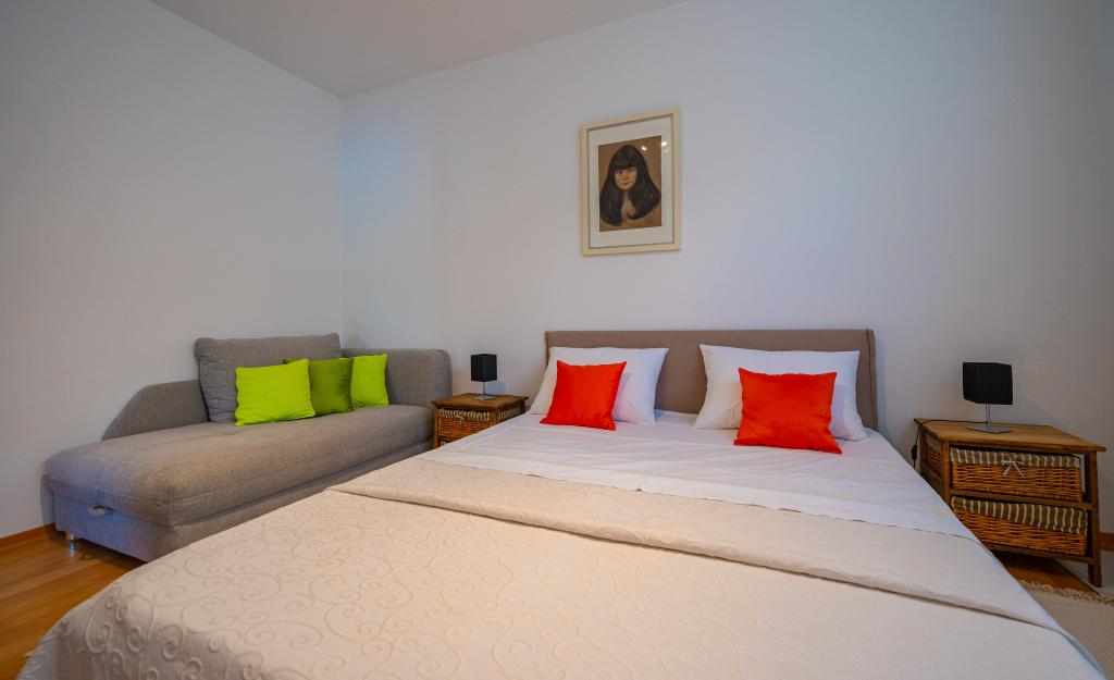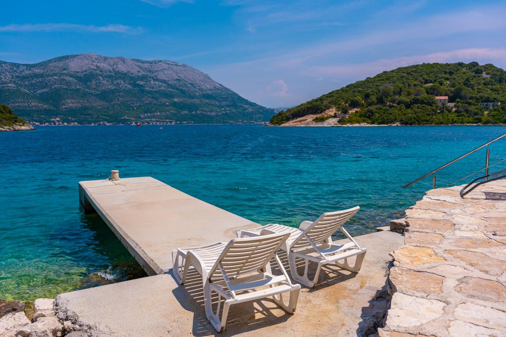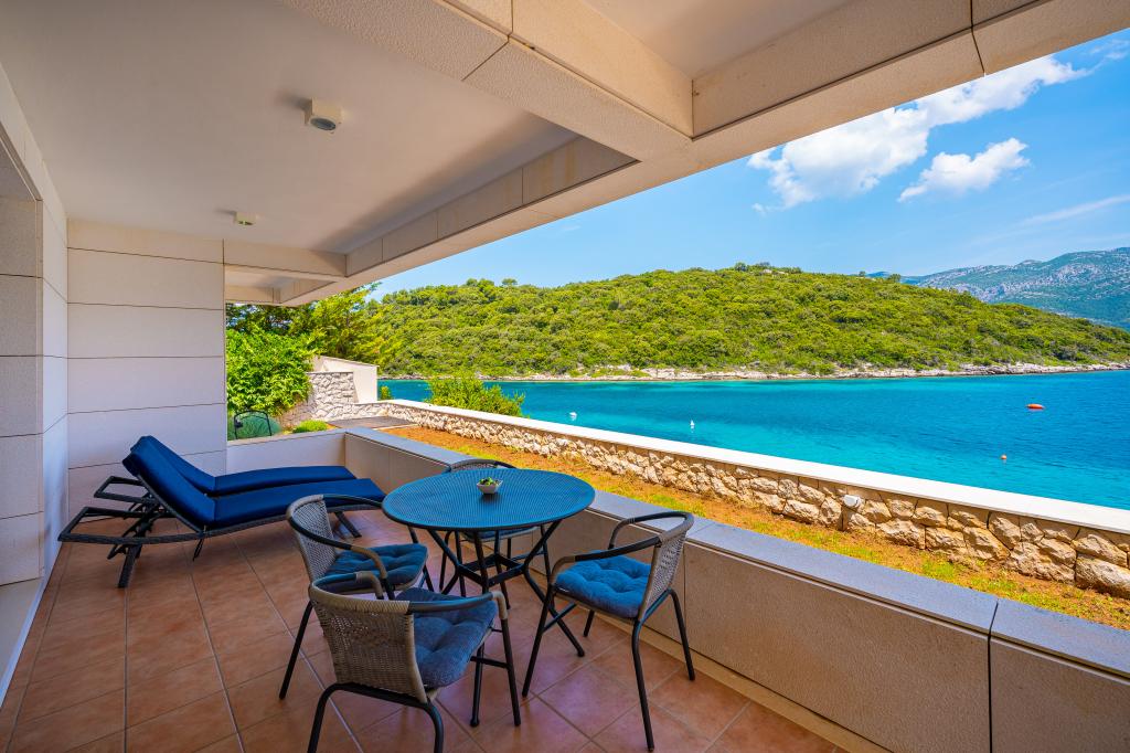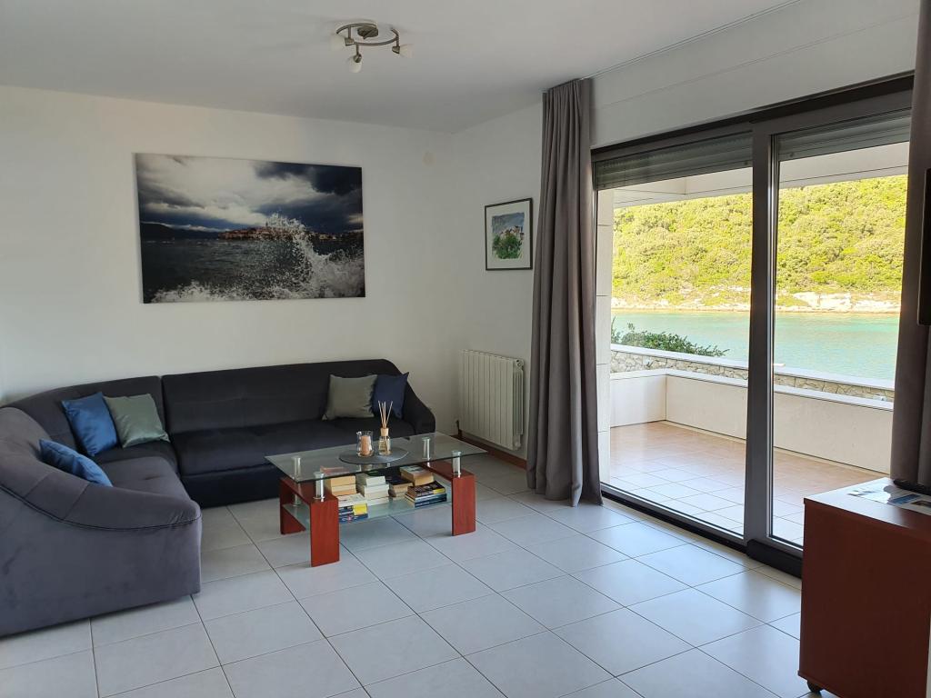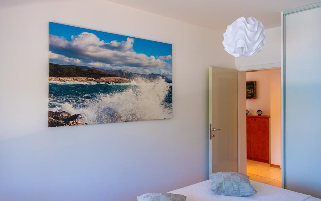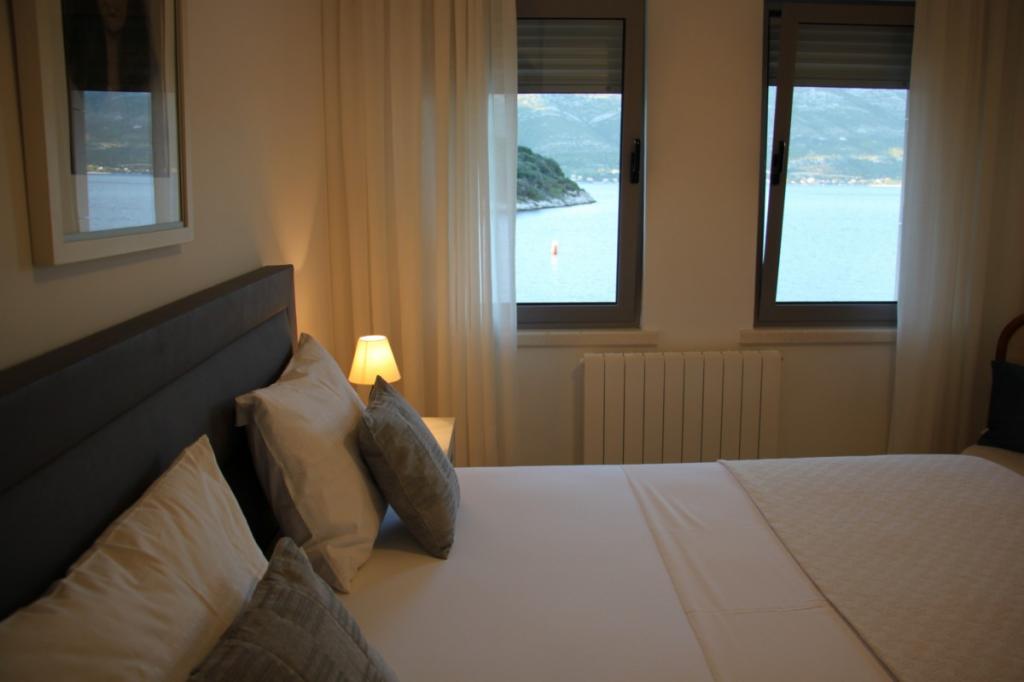 Villa Avantgarde - apartament bezpośrednio nad morzem dla 4 osób - bardzo cicha zatoka - wyspa Korčula - Chorwacja Jest dziełem znanego chorwackiego i światowej sławy architekta. Położony jest w spokojnej zatoce, ok. 4 km od centrum miasta. W willi mają Państwo do dyspozycji komfortowe mieszkanie o powierzchni ok. 100 m2, na który składają się 2 sypialnie, łazienka oraz salon z dobrze wyposażoną kuchnią, jadalnią i salonem, z którego jest wyjście na przestronny taras z bezpośrednim wyjściem na prywatną plażę. Plaża znajduje się 9 m od apartamentu. W Willi jest tylko jedno mieszkanie do wynajęcia. Jest otoczony zadbanymi trawnikami, zielenią, śpiewem ptaków i morzem. Do dyspozycji gości jest zamknięty prywatny parking. Sypialnia, pokój dzienny, jadalnia i taras wychodzą bezpośrednio na morze. Można z niego korzystać przez cały rok, gdyż wyposażony jest w centralne ogrzewanie.