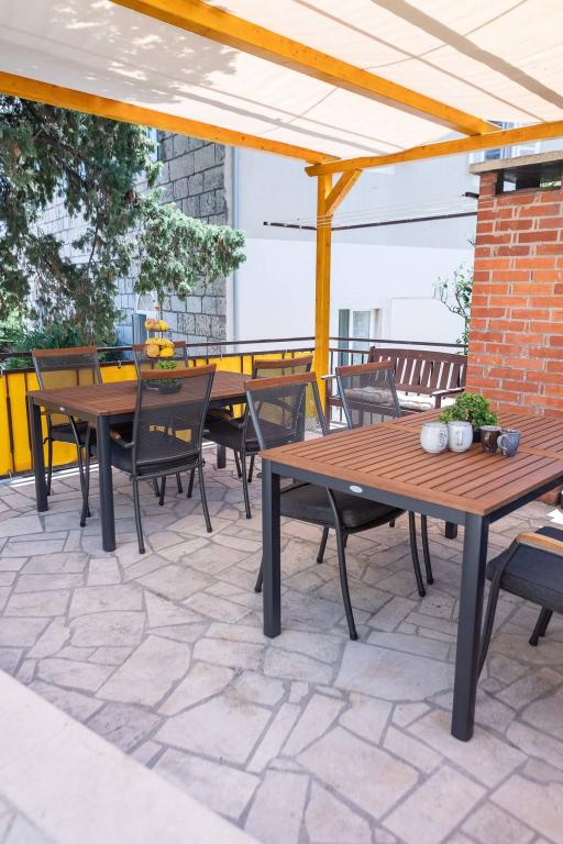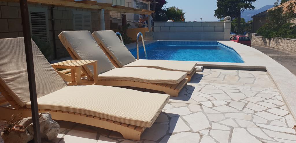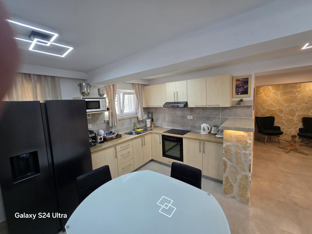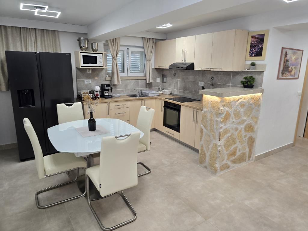 Apartament ID 759 o powierzchni 83 m². Luksusowo umeblowany i położony w pięknej, nadmorskiej części miasta Korčula. Apartament posiada własny basen, dwa duże tarasy i taras do opalania. Apartament oferuje absolutnie wszystko, czego potrzebujesz na wakacje. Dwie klimatyzatory, duża łazienka, dwa telewizory, przyjemna, komfortowa przestrzeń, dwie sypialnie i własne miejsce parkingowe. Do centrum miasta jest zaledwie 5 minut spacerem, a do plaży 2 minuty. Grill na tarasie dla Twojej przyjemności kulinarnej. Apartament wyposażony jest w pralkę i suszarkę, zmywarkę, dwa ekspresy do kawy, tostery, sokowirówkę itp. W pełni i nowocześnie wyposażone apartamenty w spokojnej okolicy miasta Korčula, położone w pierwszym rzędzie do morza. Obiekt znajduje się 5 minut spacerem od centrum miasta, a plaża i parking znajdują się tuż przed nim. Apartamenty i pokoje ID 760 i ID 761 oraz pokoje ID 5589 i ID 5599 są luksusowe. Taras z tyłu również jest zadaszony pergolą i plandeką. Do dyspozycji gości jest własny parking.