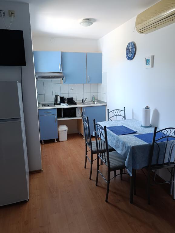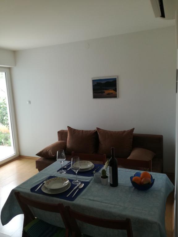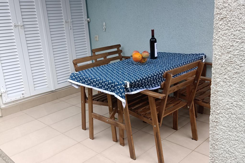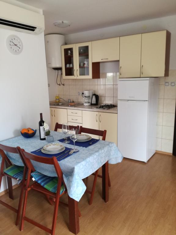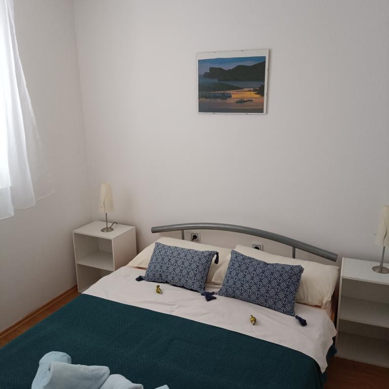 Apartamenty ***, TV/SAT, klimatyzacja, balkon, osobna sypialnia, dodatkowe łóżko w salonie, miejsce parkingowe, 10 min spacerem do morza i plaży, sklepów i kawiarni, 25 min łatwym spacerem do starego miasta. Dom znajduje się w spokojnej części miasta, w pobliżu basenu Gojko Arneri, który ma kryty basen i siłownię i może być używany przez cały rok. Apartamenty z osobną sypialnią z łóżkiem małżeńskim, salonem z dodatkowym łóżkiem, które można przekształcić w łóżko pojedyncze, kuchnią w salonie ze wszystkimi niezbędnymi udogodnieniami, łazienką z prysznicem, w pełni wyposażoną, balkonem ze stołem z czterema krzesłami, miejscem parkingowym przed domem. Cena obejmuje: końcowe sprzątanie, parking, Wi-Fi, klimatyzację, suszarkę do włosów, wspólny grill, parasol, podatek turystyczny