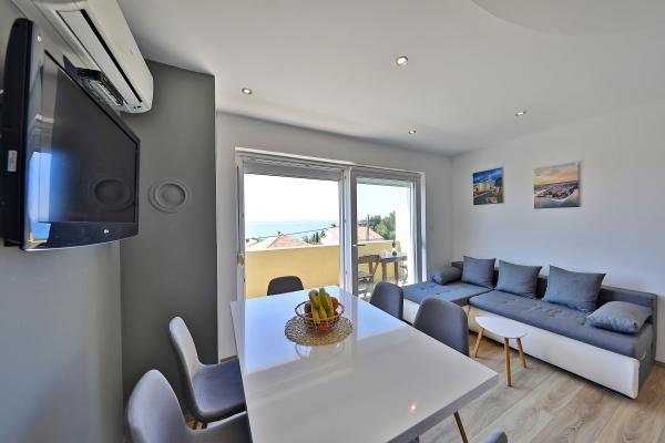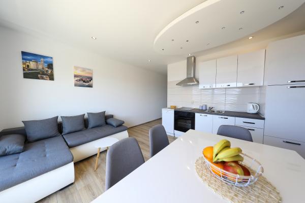 Witamy drodzy goście! Dla wszystkich, którzy kochają ciszę i spokój, oferujemy idealne kwatery prywatne, które zapewnią Państwu najwyższy komfort, przyjemny wypoczynek i poczucie własnego domu. Apartamenty M z pięknym widokiem na kanał Zadar i wyspy znajdują się w Kožinie. Kožino to miejscowość niedaleko Zadaru, tylko 8 km od starego centrum Zadaru (kościół św. Donata, Powitanie Słońca, główna ulica Zadaru Kalelarga, nabrzeże Zadaru, najpiękniejszy zachód słońca, ...) Jeden z apartamentów znajduje się na parterze, natomiast dwa pozostałe apartamenty znajdują się na drugim piętrze budynku z pięknym widokiem na morze i tarasem, na którym znajduje się basen. Apartamenty składają się z kuchni i jadalni, salonu, łazienki, toalety i sypialni. Każdy apartament posiada 2 sypialnie. Miejsca parkingowe przynależą do apartamentów. Na tarasie przy basenie znajduje się grill dostępny dla wszystkich gości oraz plac zabaw dla dzieci zlokalizowany na podwórku. Apartamenty są niedawno odnowione, w pełni nowoczesne i wyposażone,...