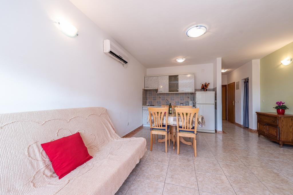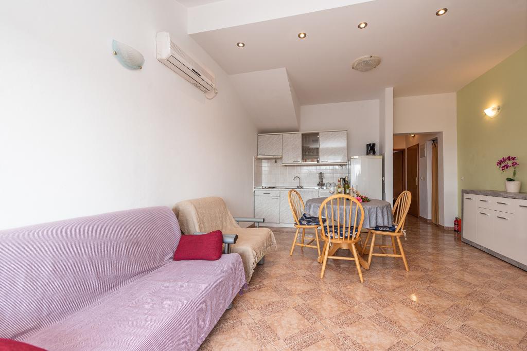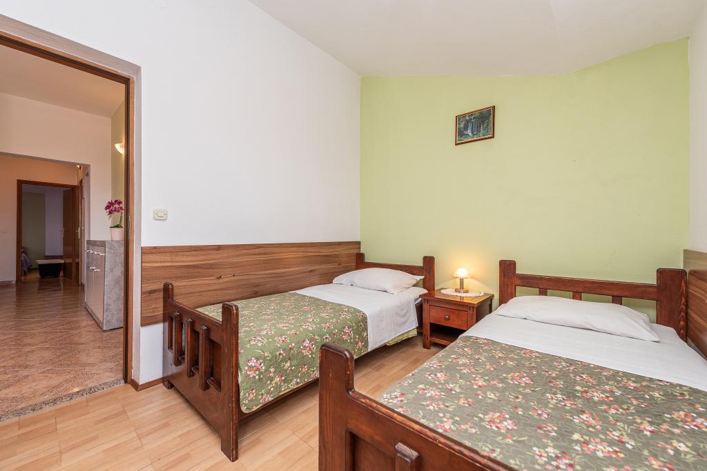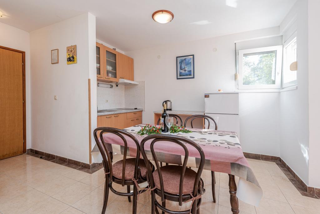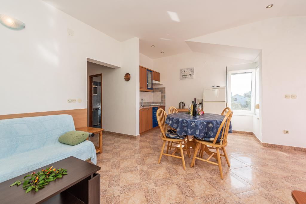 Pobyt upłynął w atmosferze spokoju i odgłosów natury, dzięki dużej ilości zieleni wokół apartamentu. Czuliśmy się jak w domu. Apartament był ładnie urządzony, w pełni wyposażony i czysty, a na zewnątrz znajdował się ogródek z grillem i prysznicem. Łóżko było nieco mniej wygodne. Spędziliśmy miłe chwile w towarzystwie właścicieli, którzy sprawili, że poczuliśmy się ciepło przyjęci. Zadbane plaże, czysta woda, naturalny cień. W pobliżu znajdują się liczne sklepy i znakomite restauracje. Istnieje wiele możliwości pieszych wędrówek. Najlepsza jest w większości zacieniona, żwirowa ścieżka do Petrčane. W mieście można również odwiedzić kino plenerowe.