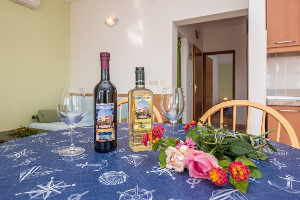Opłata jest wliczone w cenę.W cenę wynajmu wliczony jest drink powitalny oraz spożycie lokalnego wina i brandy podczas pobytu w apartamencie. W cenę wliczone jest również spożycie sezonowych organicznych owoców i warzyw (ziemniaki, cebula biała i czerwona, pomidory, ogórki, arbuzy, melony, seler, figi...). Przy pobycie dłuższym niż 10 dni cena obejmuje bezpłatną eko kolację (specjalność Dalmacji).