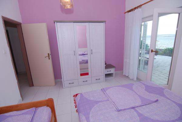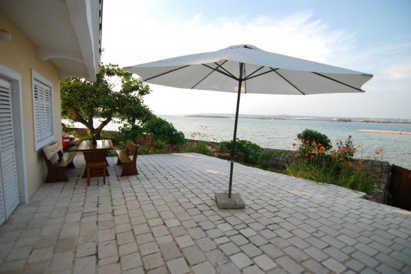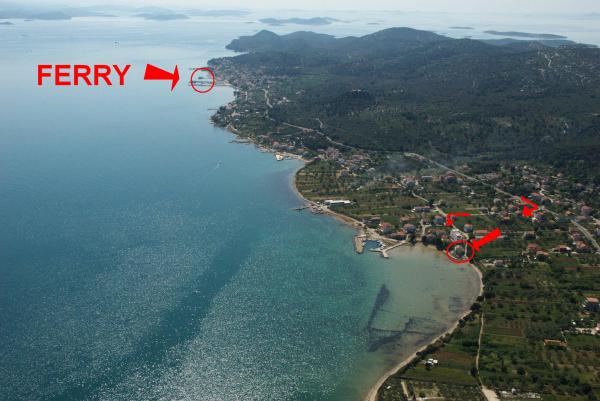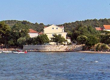 Pasman Wyspa. Apartament A8, A4 +1, A2 +1. Dom zaledwie 5-6 metrów od piaszczystej plaży. Spokojna lokalizacja na wakacje. Bez problemów w tej dziedzinie. Naturalna plaża, szczególnie nadaje się dla rodzin z małymi dziećmi.