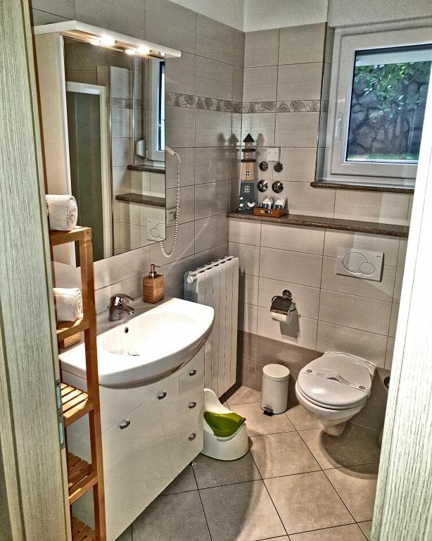Nowy, przestronny apartament, starannie i gustownie urządzone i przykładowe czyste. Jest, między innymi, bezprzewodowy internet, który działa również na tarasie apartamentu :-), w pełni wyposażona kuchnia, a nawet żelazko i deska do prasowania. Dom położony w cichej uliczce na obrzeżach centrum miasta. Powierzchnia jest urządzony z taką samą starannością jak domu, z powrotem do stoczni jest ładny, mały plac zabaw dla dzieci. Ważny szczegół: mieszkanie nadaje się również dla osób na wózkach inwalidzkich. Wszystkie podłogi w mieszkaniu są na tym samym poziomie, bez progu, drzwi są szerokie i łazienka jest przestronna. Gospodarze są miłe, otwarte młode rodziny, więc nie czuję się jak nieustalonych gości, ale jak odwiedzanie znajomych. Plaża jest w odległości krótkiego spaceru, większa część w cieniu. Można także prowadzić samochód i park obok plaży. W obozie na końcu plaży jest piekarnia, mały sklep i kilka restauracji. Wszystko inne jest w centrum miasta, duże centrum handlowe jest w pobliżu Rijeka. W czasie naszego pobytu odwiedziliśmy franciszkański Manor, stocznię i ciekawe domy zbudowane w niemal pionowych skałach po wschodniej stronie wsi. Odwiedziliśmy Rijeka i Crikvenica, ciekawe miasto Bakar jest także w pobliżu. Polecam wszystkim, którzy chcą spędzić wakacje w spokojnej okolicy, rodzin z dziećmi oraz dla tych, którzy chcą nauczyć się mniej "turystycznych" miejscach. (W tłumaczeniu, skopiować tekst do Google Translate)