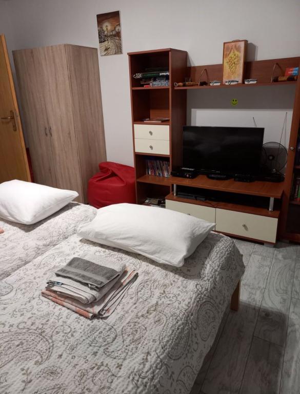 Zagorje, Krapina, Chorwacja 2 apartamenty w naturze Dostępne przez cały rok Zatwierdzamy zniżkę od ceny przy bezpośrednich rezerwacjach (na przykład przez Apartmanija) Każdy apartament posiada: 2 sypialnie (1 łóżko podwójne i 2 łóżka pojedyncze) 1 kuchnię 1 łazienkę 1 balkon Bezpłatny parking i Wi-Fi Na podwórzu trampolina, huśtawki, mini zjeżdżalnia, grill Obok domu ogród/sad/winnica W pobliżu lasu, niedaleko góry Strahinjčica 3 km od Muzeum Neandertalczyków Krapin 3 km od Muzeum Oldtimerów 40 min od Zagrzeb 40 min od Trakošćan 40 min od Marija Bistrice 40 min od Varaždin 15 min od uzdrowiska 20 km od Słowenii https://www.facebook.com/PotockiKrapina